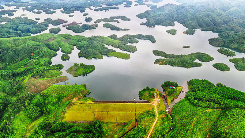 Hồ Trúc Bài Sơn (xã Đường Hoa) là nguồn cung cấp nước quan trọng, phục vụ cho sản xuất đất nông nghiệp.