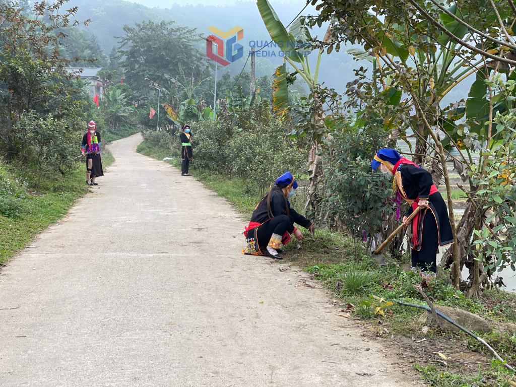 Người dân thôn Nà Khau, xã Đồng Tâm, huyện Bình Liêu tham gia Ngày Chủ nhật xanh.