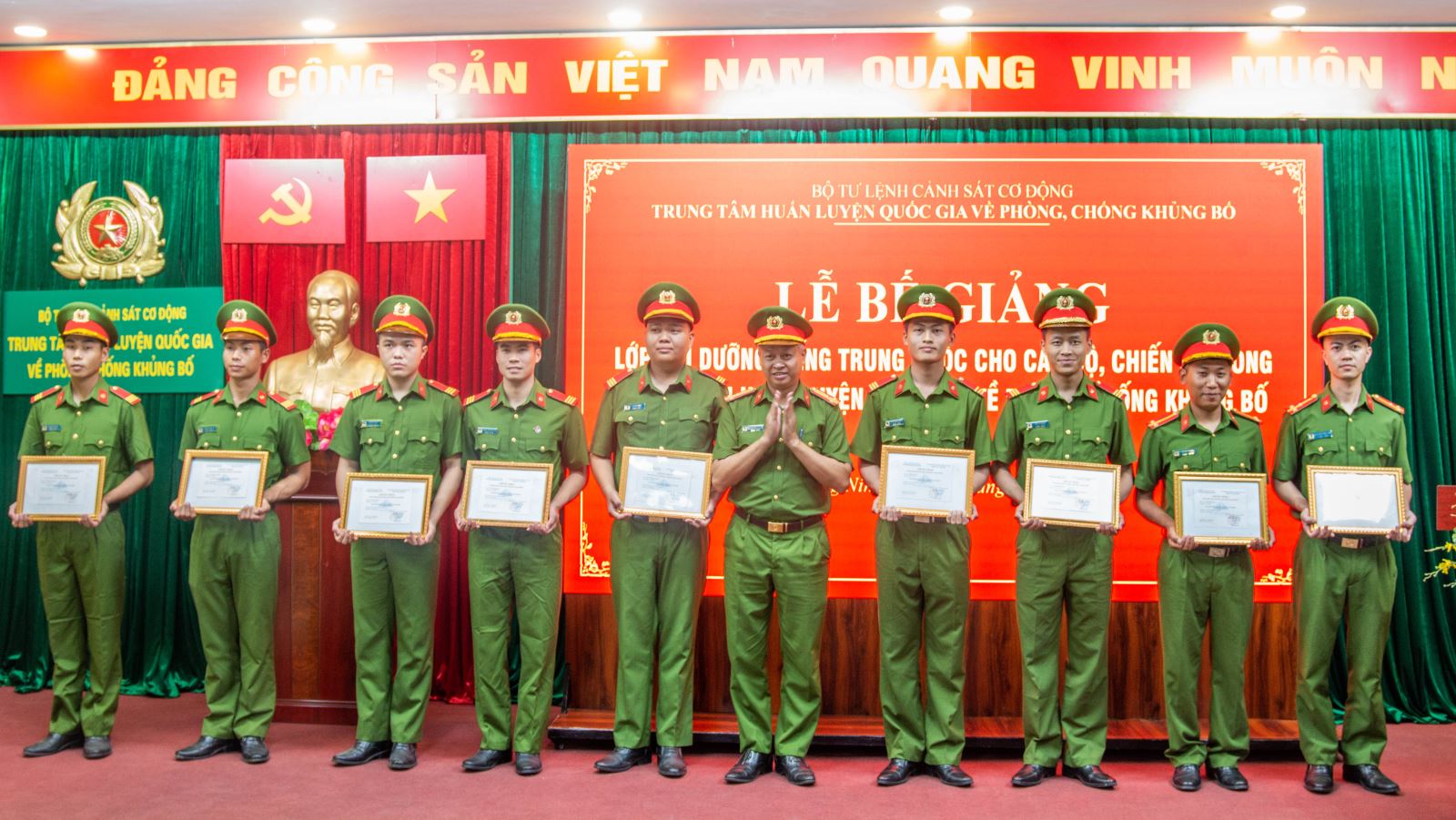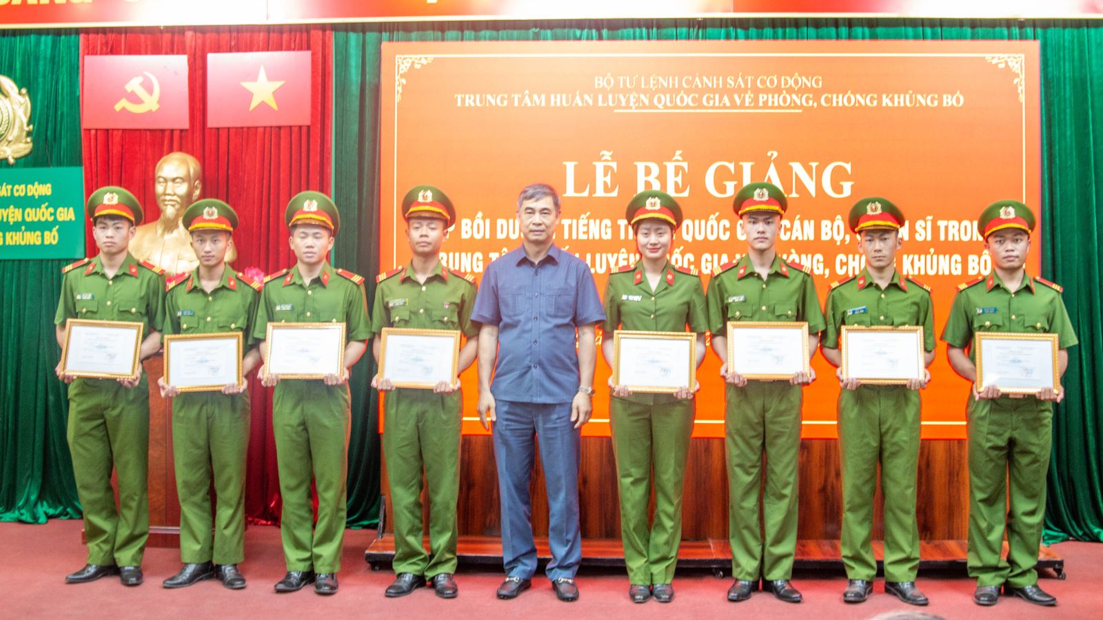 Chiều 28/4/2026, Trường Đại học Hạ Long đã phối hợp với Trung tâm huấn luyện quốc gia về phòng, chống khủng bố tổ chức lễ bế giảng khóa bồi dưỡng tiếng Trung Quốc cho hơn 70 cán bộ, chiến sỹ.