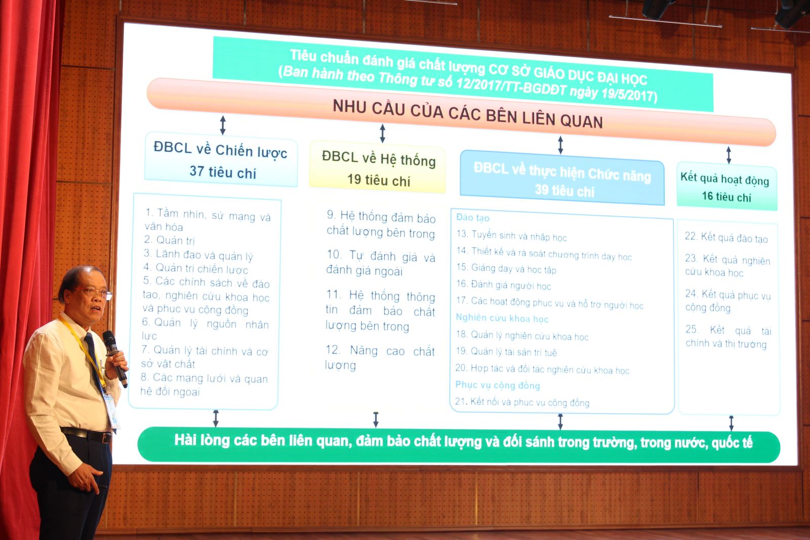 Tại chương trình, TS. Nguyễn Đình Huy, Phó Giám đốc Trung tâm KĐCLGD - Trường ĐH Vinh đã cảm ơn và đánh giá cao tinh thần làm việc nghiêm túc, khách quan, công tâm, minh bạch của các chuyên gia trong Đoàn đánh giá ngoài đồng thời cảm ơn và đánh giá cao sự phối hợp, chủ động xử lý công việc cùng tinh thần hợp tác đầy trách nhiệm của cán bộ giảng viên và sinh viên Trường Đại học Hạ Long trong suốt quá trình Trung tâm và Đoàn đánh giá ngoài triển khai các hoạt động đánh giá. TS. Nguyễn Đình Huy khẳng định sự hợp tác toàn diện của Nhà trường là một trong những yếu tố quan trọng quyết định cho sự thành công của đợt khảo sát chính thức nói riêng và công tác kiểm định chất lượng nói chung.