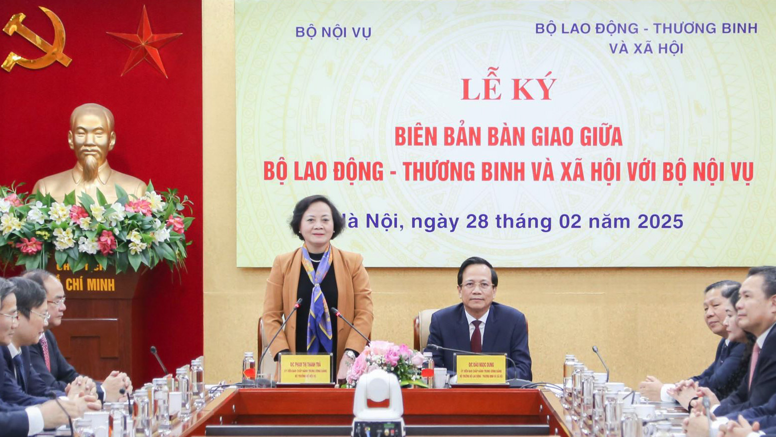 Phát biểu tại Lễ ký Biên bản bàn giao giữa Bộ Lao động - Thương binh và Xã hội với Bộ Nội vụ diễn ra vào chiều 28/02/2025, tại Hà Nội, Bộ trưởng Bộ Nội vụ Phạm Thị Thanh Trà nhấn mạnh: ngày 28/8/1945, Chủ tịch Hồ Chí Minh đã ký Tuyên cáo thành lập Chính phủ lâm thời nước Việt Nam Dân chủ Cộng hòa gồm 13 bộ, trong đó có tiền thân của hai Bộ (Lao động - Thương binh và Xã hội và Nội vụ). Trong suốt chặng đường lịch sử 80 năm, hai Bộ đã đồng hành, trải qua các thời kỳ đấu tranh giải phóng dân tộc, thống nhất và xây dựng đất nước sau chiến tranh, cũng như trong thời kỳ đổi mới, hội nhập hiện nay.