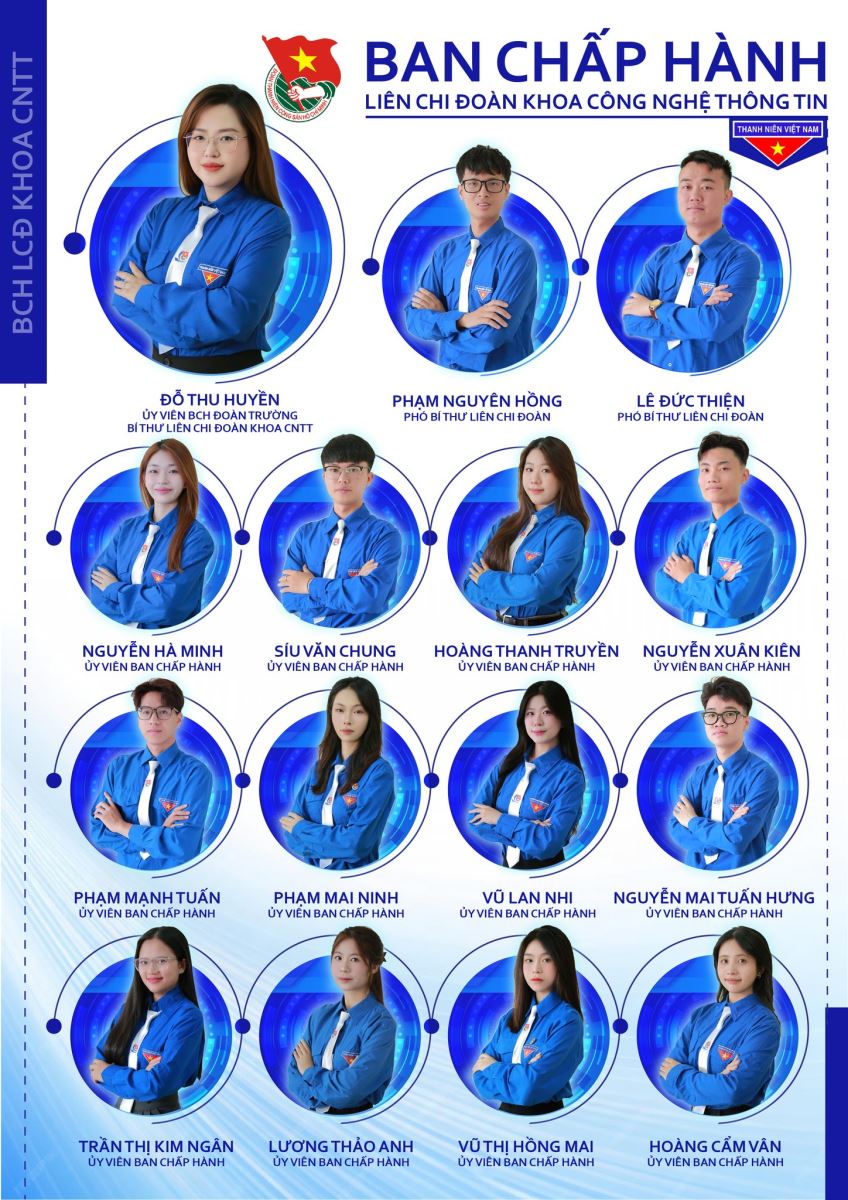Mỗi gương mặt trong Ban Chấp hành là một “mảnh ghép công nghệ” độc đáo – cùng nhau tạo nên tập thể năng động, đoàn kết và đầy sáng tạo, sẵn sàng dẫn dắt phong trào Đoàn, lan tỏa tinh thần “Bản lĩnh – Sáng tạo – Kết nối – Cống hiến” của sinh viên CNTT.