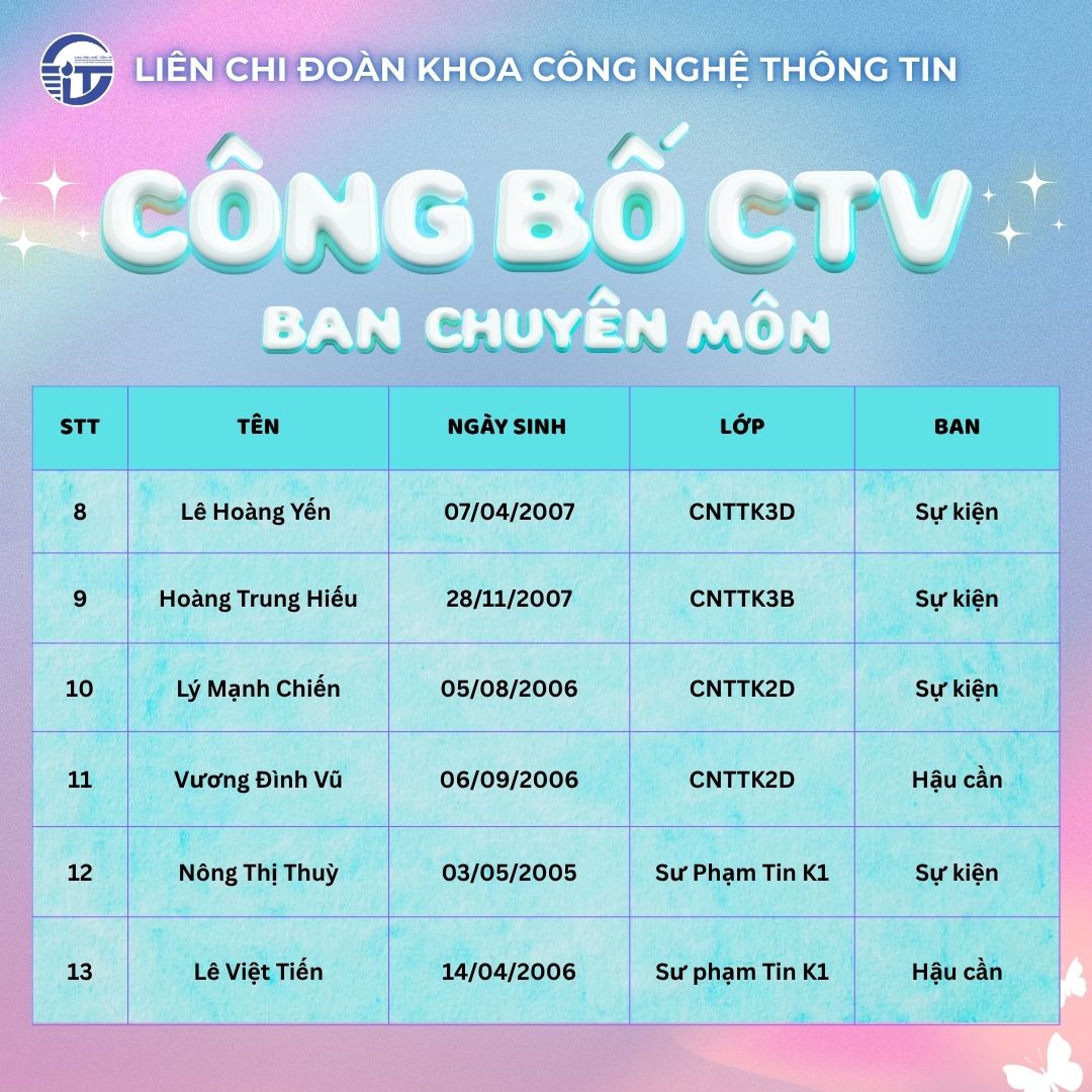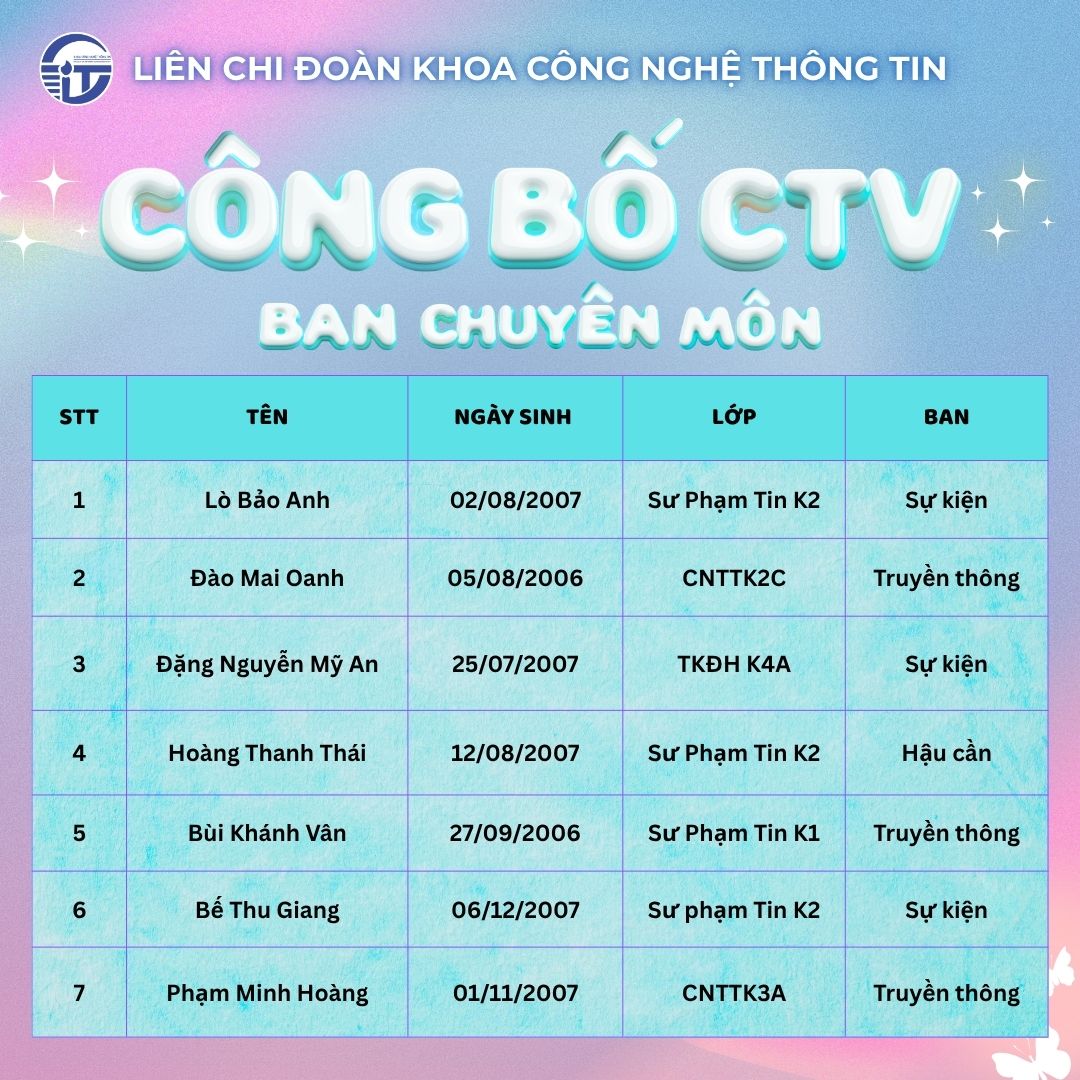 Khoa Công nghệ thông tin xin chúc mừng các bạn Cộng tác viên mới và hy vọng rằng các bạn sẽ tiếp tục phát huy năng lực, giữ vững tinh thần nhiệt huyết để đồng hành cùng Khoa trong các chương trình, hoạt động chuyên môn sắp tới.