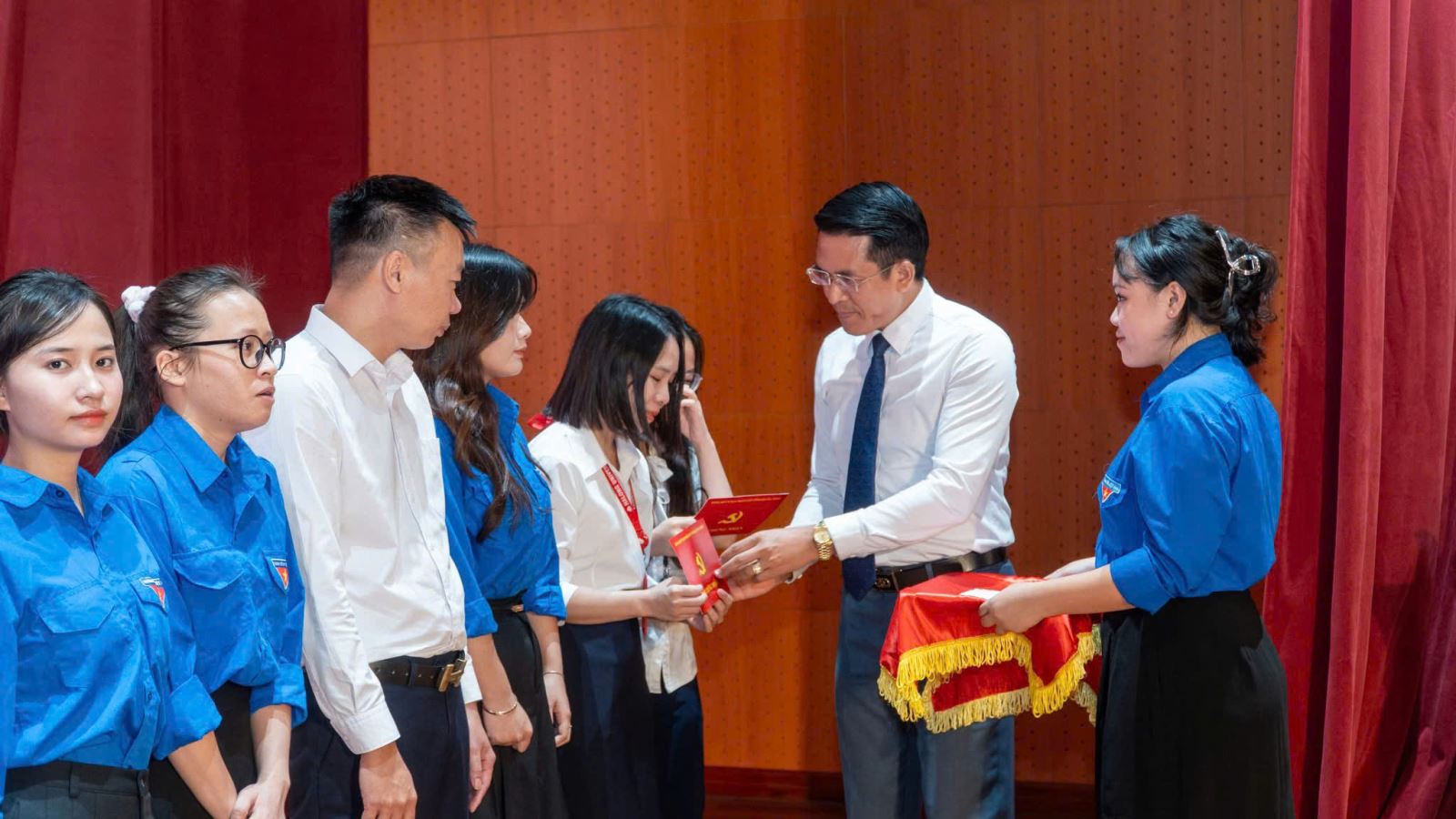 Một số hình ảnh quần chúng khoa Thủy sản lên nhận giấy chứng nhận trong Lễ buổi bế giảng lớp học: