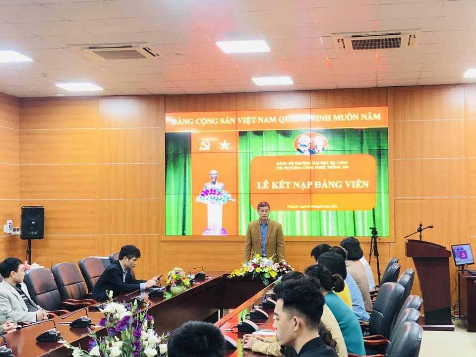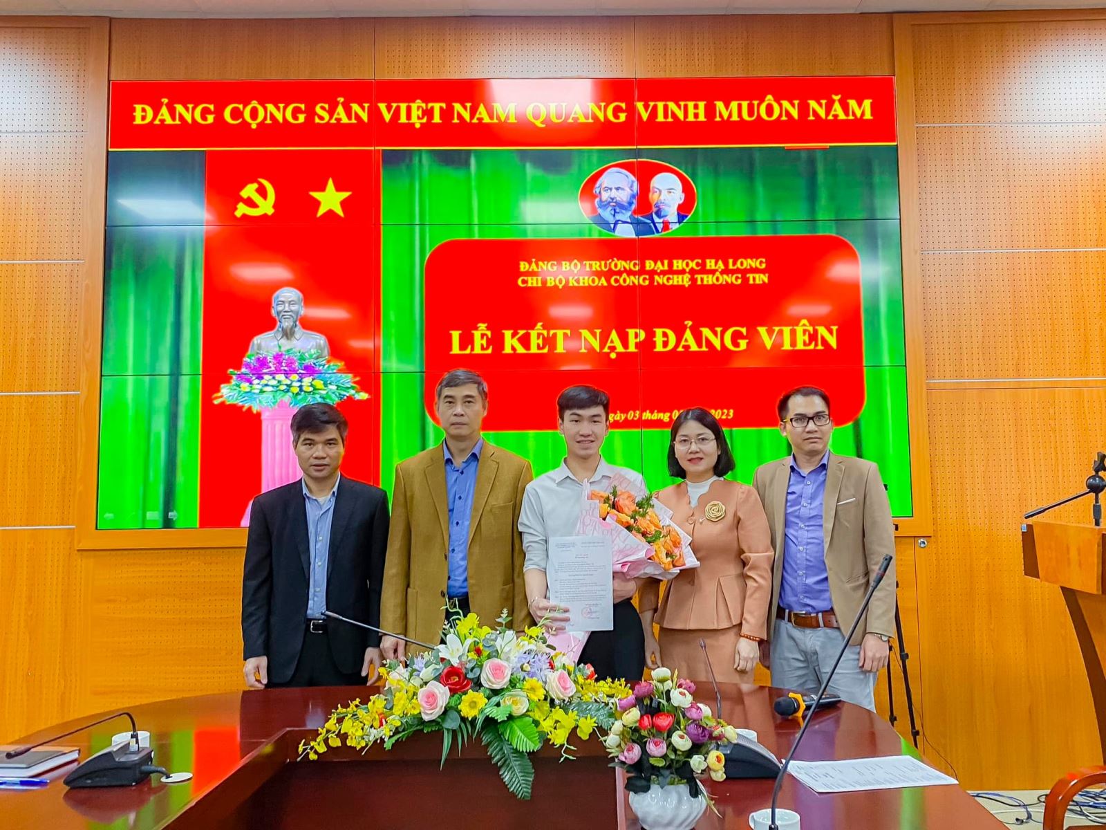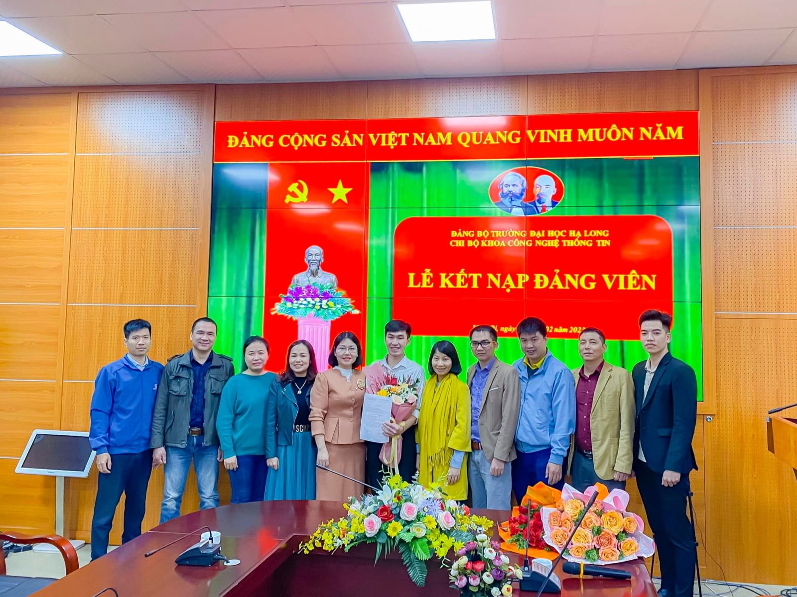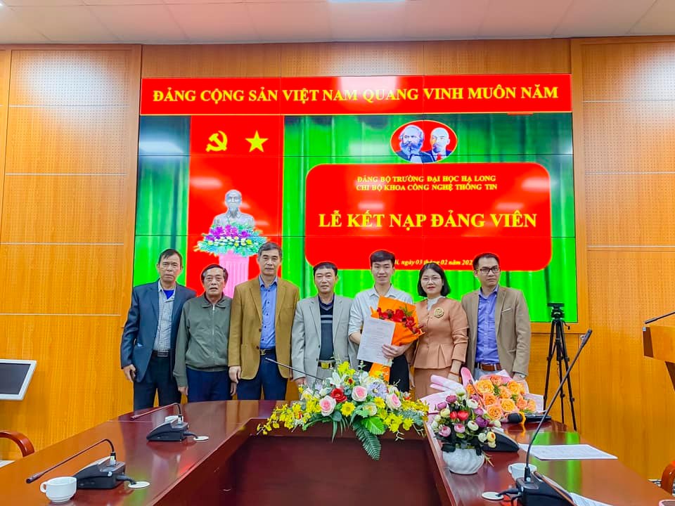 Được sự đồng ý của Đảng Ủy trường Đại học Hạ Long, ngày 03/02/2023 chi bộ khoa Công nghệ thông tin đã tổ chức lễ kết nạp đảng viên cho quần chúng Nguyễn Hoàng Việt, sinh viên lớp Khoa học máy tính K6A. Tham dự buổi lễ có đồng chí Trần Trung Vỹ - Bí thư đảng uỷ nhà trường và đồng chí Nguyễn Mai Hùng - Uỷ viên Ban thường vụ Đảng uỷ, tập thể đảng viên chi bộ.