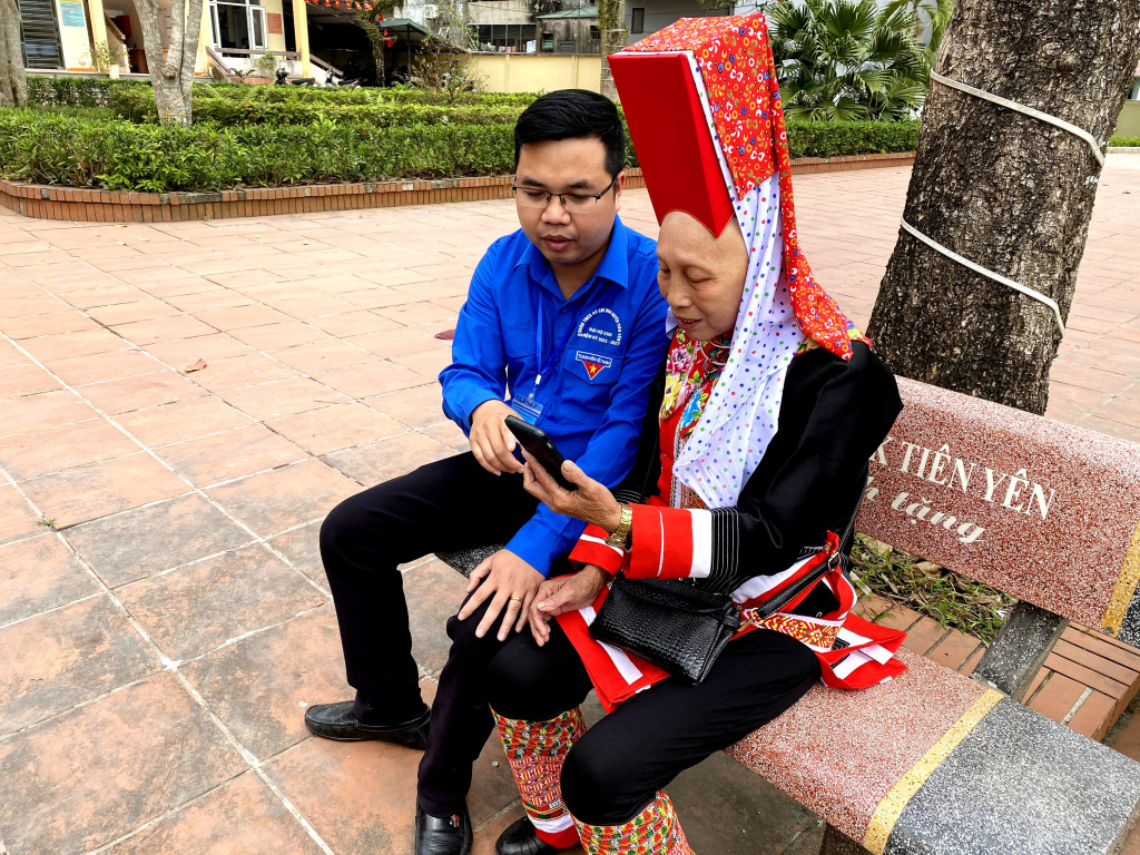Đoàn Thanh niên xã Đông Ngũ (huyện Tiên Yên) hướng dẫn người dân các ứng dụng tiện ích chuyển đổi số.