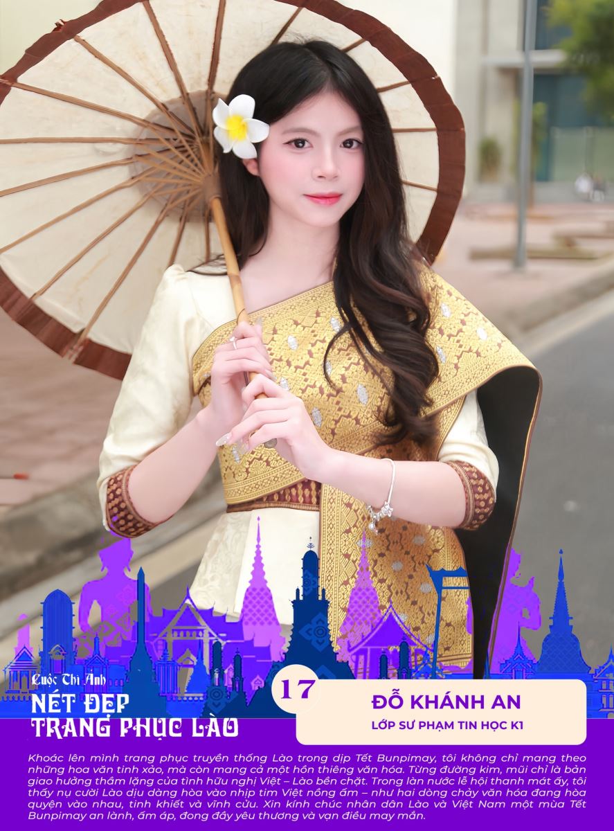 📸 Mời quý thầy cô và các bạn sinh viên cùng ngắm nhìn những khoảnh khắc rạng rỡ, tự tin và duyên dáng của các thí sinh tại cuộc thi "Nét đẹp trang phục Lào"!