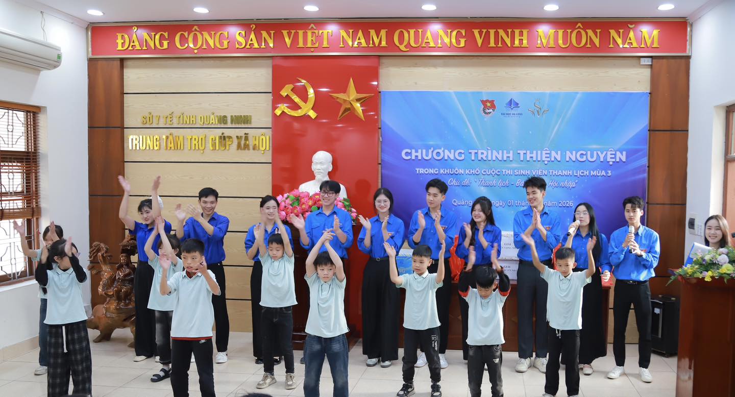 Sáng ngày 01/02/2026, trong khuôn khổ Cuộc thi Sinh viên Thanh lịch mùa 3, Trường Đại học Hạ Long đã tổ chức hoạt động thiện nguyện tại Trung tâm Trợ giúp Xã hội tỉnh Quảng Ninh – Cơ sở 2 (Hạ Long), mang không khí ấm áp của mùa xuân sớm đến với các em nhỏ có hoàn cảnh đặc biệt.
