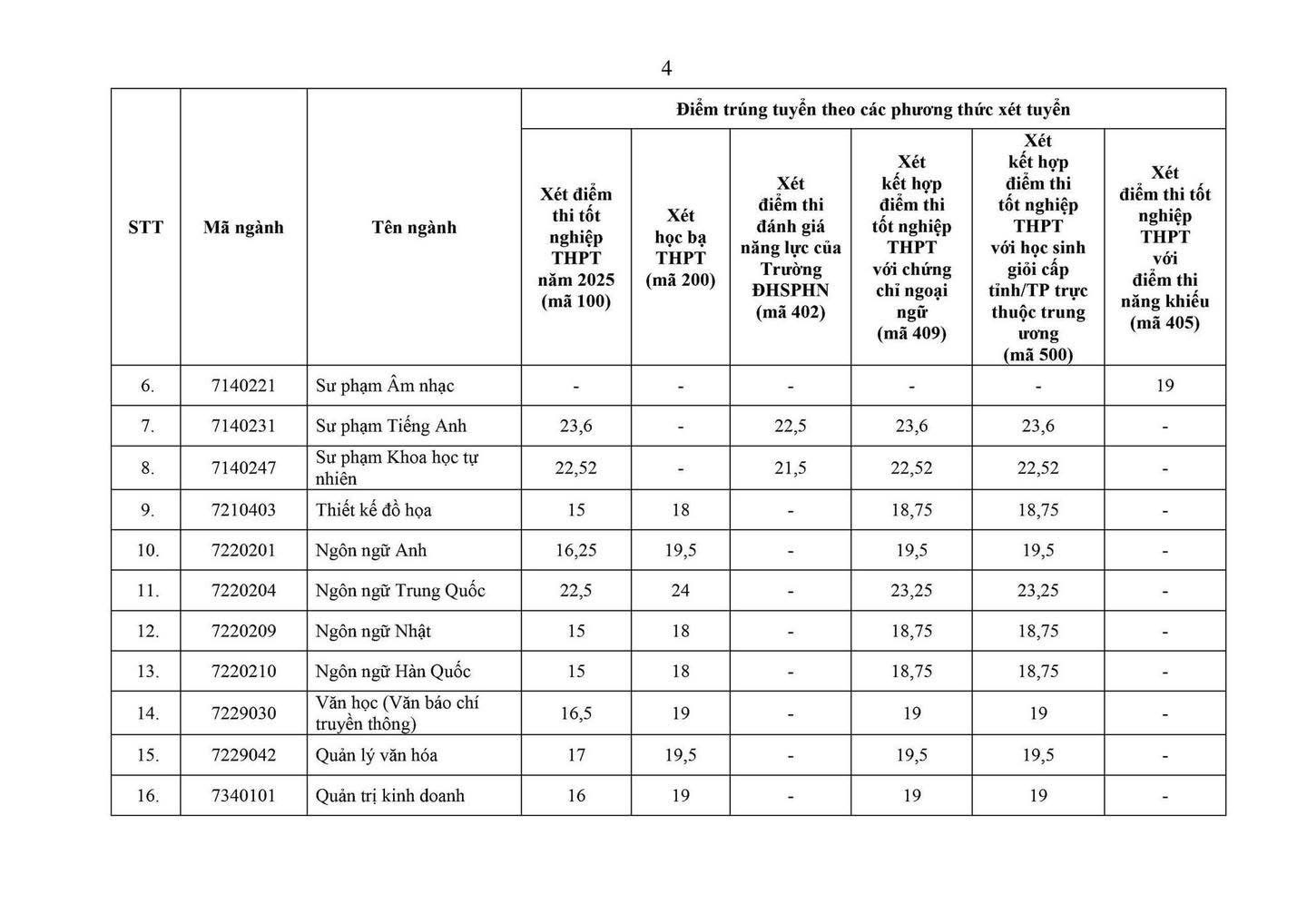 Khoa Công nghệ Thông tin trân trọng thông báo điểm chuẩn trúng tuyển năm 2025 cho 4 ngành đào tạo:
