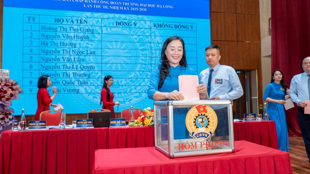 Với tinh thần dân chủ, đoàn kết và trách nhiệm, Đại hội đã tiến hành bầu Ban Chấp hành Công đoàn Trường Đại học Hạ Long khóa III gồm 09 đồng chí. Đồng chí Nguyễn Thị Ngọc Lan (Chủ tịch Công đoàn Trường khóa II) tiếp tục được tín nhiệm là Chủ tịch Công đoàn Trường khóa III, nhiệm kỳ 2025–2030.