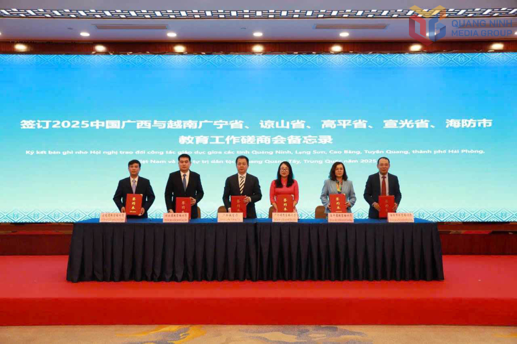 Đại diện lãnh đạo Sở GD&ĐT các tỉnh/thành phố: Quảng Ninh, Lạng Sơn, Cao Bằng, Tuyên Quang, Hải Phòng (Việt Nam) với Khu tự trị dân tộc Choang Quảng Tây (Trung Quốc) ký bản ghi nhớ trao đổi công tác giáo dục (tháng 11/2025).