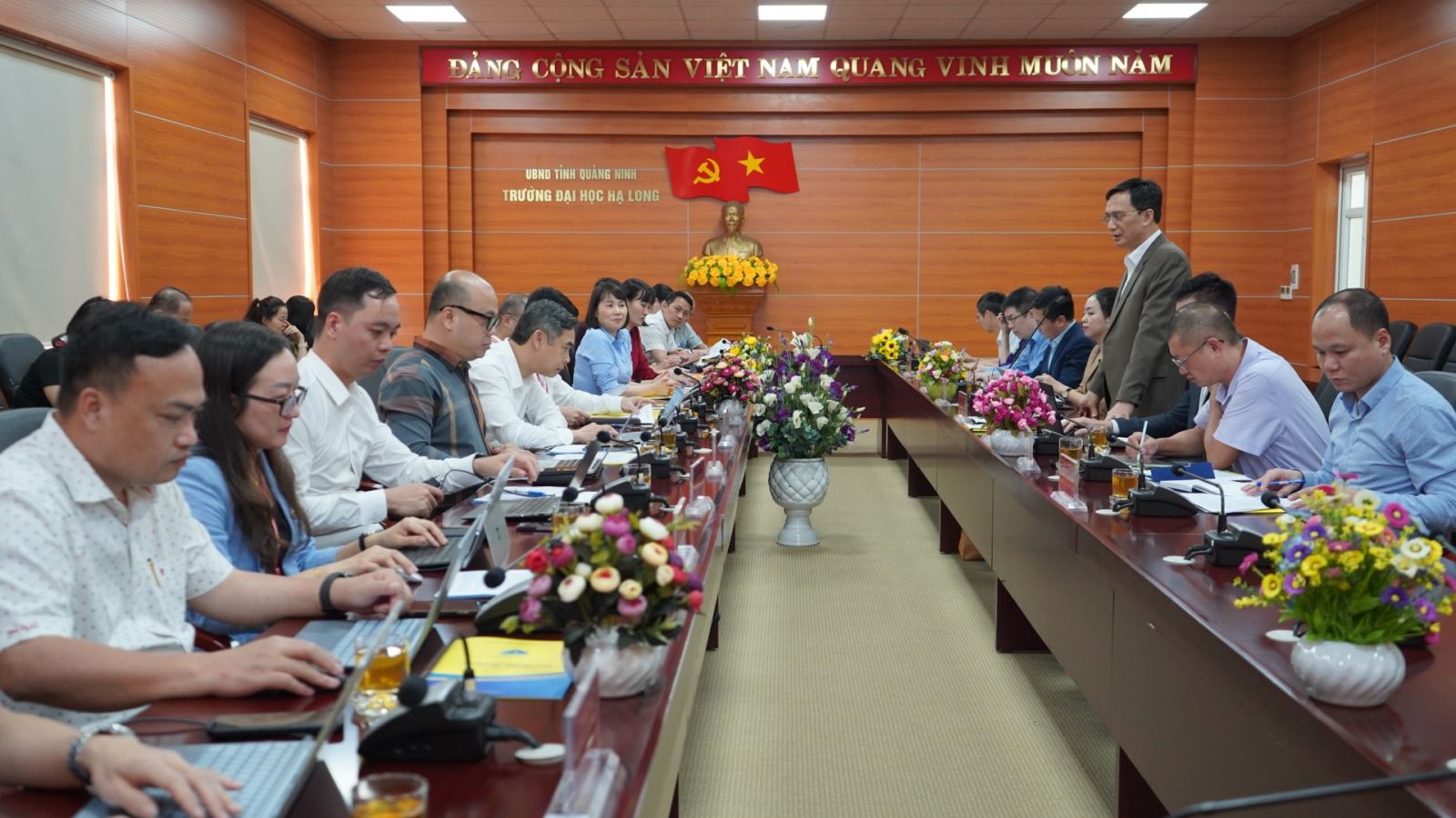 Chiều ngày 25/3/2025, Trường Đại học Hạ Long đã có buổi làm việc với Sở Khoa học và Công nghệ (KH&CN) tỉnh Quảng Ninh nhằm thảo luận về các định hướng phát triển trong lĩnh vực khoa học, công nghệ, đổi mới sáng tạo và chuyển đổi số.