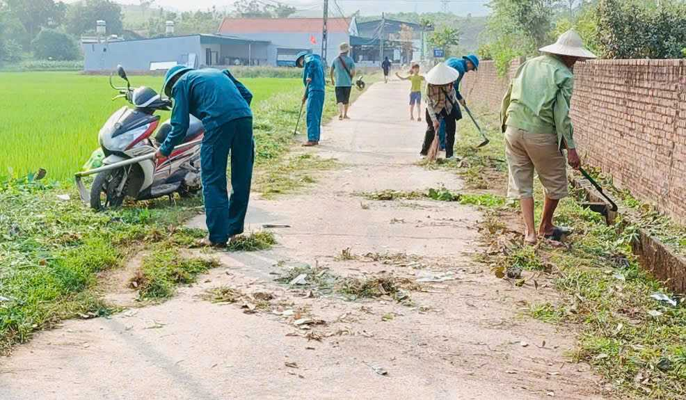 Nhân dân xã Đường Hoa tích cực tham gia phong trào ngày chủ nhật xanh. Ảnh: Thái Hà (CTV)