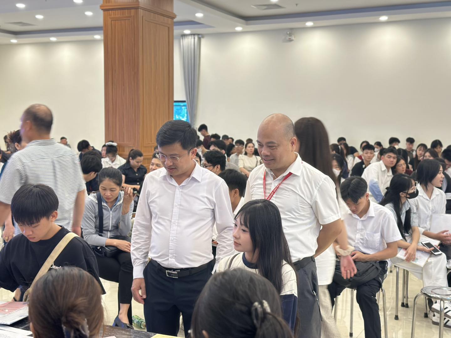 Ngay từ sáng sớm, khu vực Tòa Khách sạn Thực hành Du lịch đã tràn ngập sắc màu của niềm vui và sự háo hức. Từng tốp tân sinh viên cùng gia đình bước vào khuôn viên trường với nụ cười rạng rỡ, ánh mắt tràn đầy kỳ vọng. Các thầy cô, cán bộ và đội ngũ sinh viên tình nguyện đã có mặt từ sớm để hướng dẫn, hỗ trợ chu đáo, giúp mọi thủ tục diễn ra nhanh gọn, thuận lợi. Hình ảnh những chiếc áo xanh tình nguyện, sự nhiệt tình và thân thiện của thầy cô, anh chị khóa trên đã khiến bầu không khí ngày nhập học trở nên ấm áp, gần gũi và đầy cảm hứng.