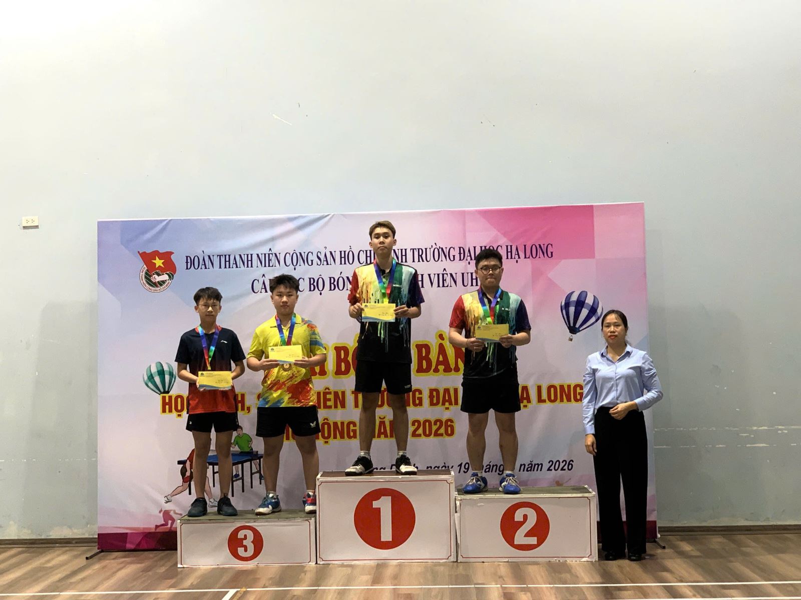 Ngày 19/4/2026, Giải Bóng bàn học sinh, sinh viên Trường Đại học Hạ Long mở rộng năm 2026 đã diễn ra thành công tốt đẹp trong không khí sôi nổi và hào hứng. Giải đấu là hoạt động ý nghĩa chào mừng kỷ niệm 51 năm Ngày Giải phóng miền Nam, thống nhất đất nước (30/4/1975 – 30/4/2026) và Ngày Quốc tế Lao động 1/5.