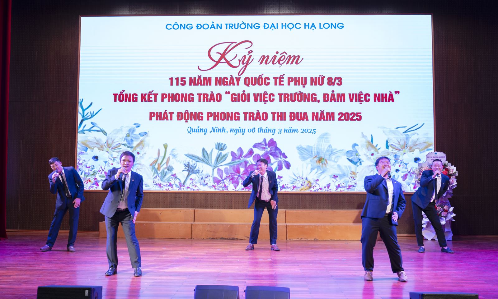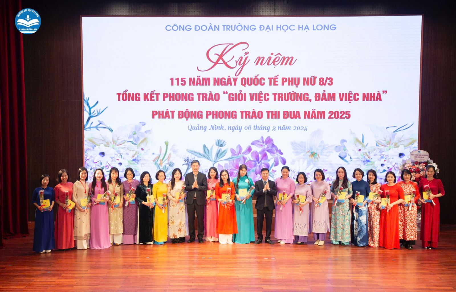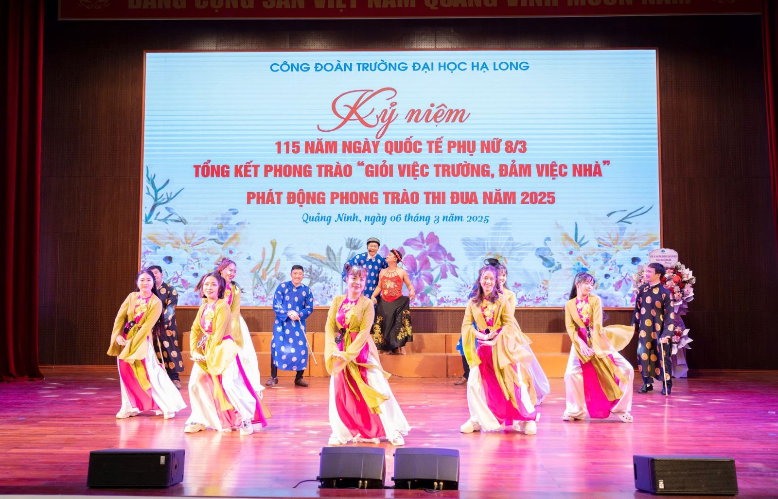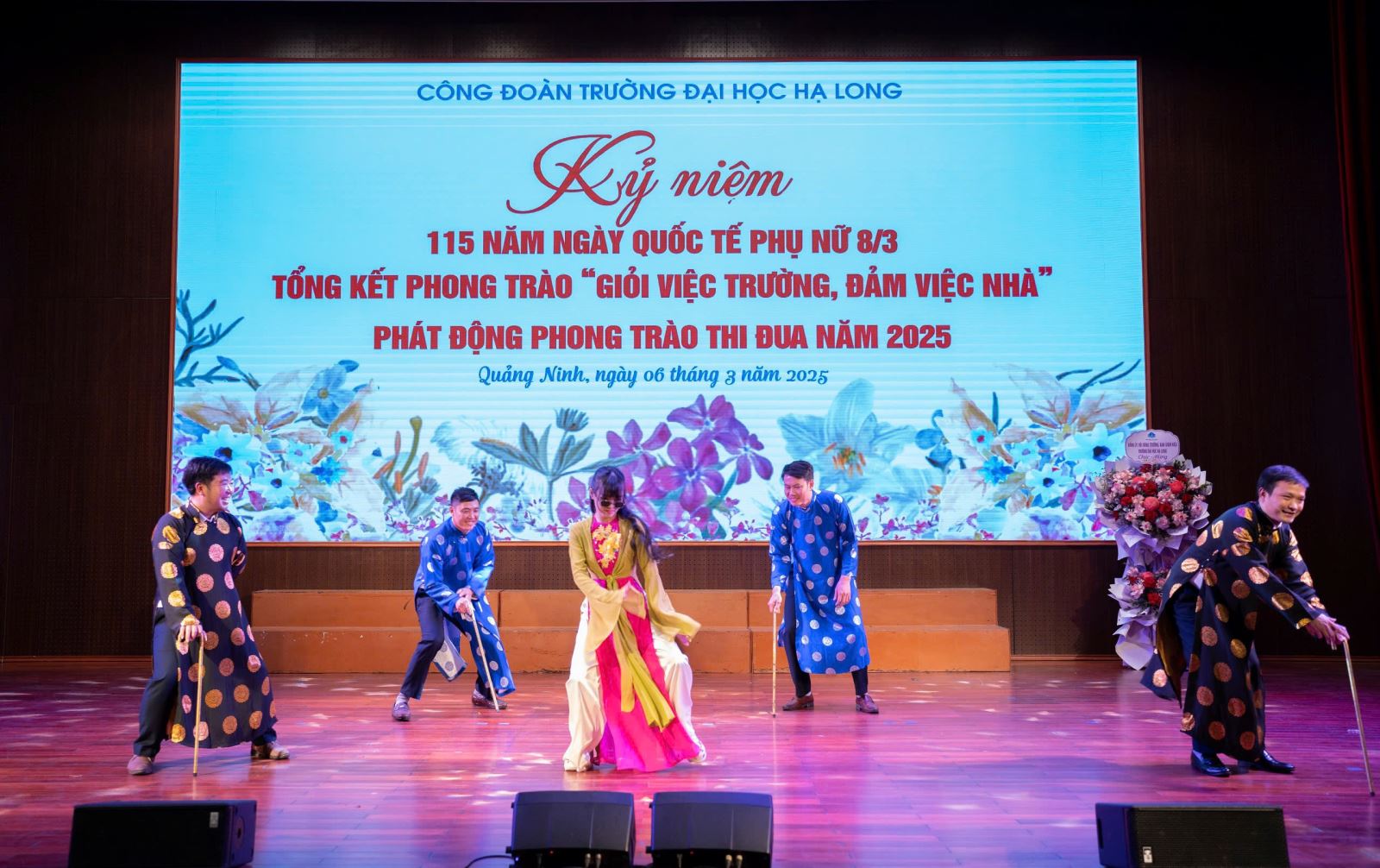 Chiều ngày 6/3/2025, Công đoàn Trường Đại học Hạ Long đã tổ chức Chương trình Kỷ niệm 115 năm Ngày Quốc tế Phụ nữ 8/3, Tổng kết phong trào "Giỏi việc Trường, đảm việc Nhà" và phát động thi đua năm 2025. Không chỉ là dịp để tôn vinh những nữ công đoàn viên xuất sắc, chương trình còn ghi dấu ấn với những tiết mục văn nghệ đặc sắc, được dàn dựng công phu. Trong đó, các màn trình diễn của liên quân Khoa Sư phạm và Trường TH, THCS & THPT Sư phạm đã thực sự bùng nổ, mang đến những khoảnh khắc khó quên.