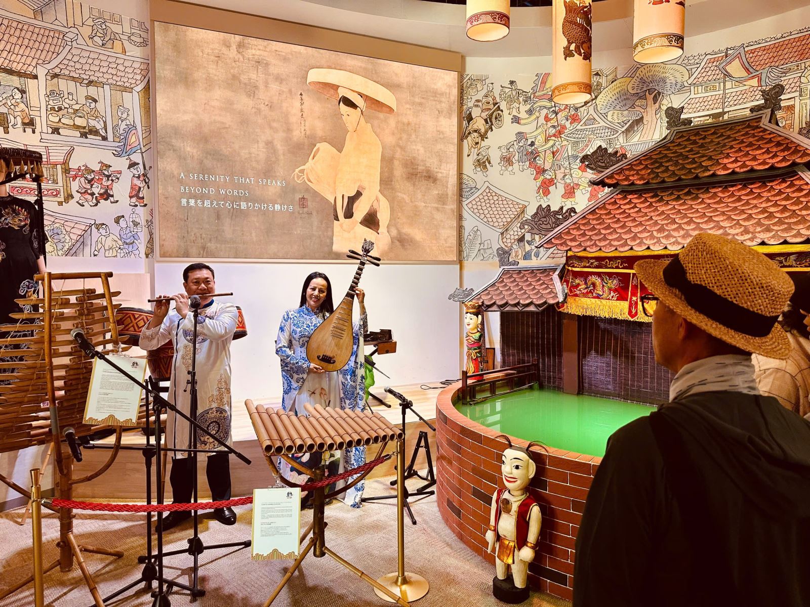Đặc biệt, tại Nhà Triển lãm Việt Nam, bên cạnh các sản phẩm mang thương hiệu đặc trưng của Quảng Ninh, hai giảng viên Trường Đại học Hạ Long đã tham gia với vai trò biểu diễn và giới thiệu các sản phẩm âm nhạc truyền thống Việt Nam. Phần trình diễn của các giảng viên là sự kết hợp giữa các làn điệu dân ca, ca khúc ngợi ca quê hương, đất nước Việt Nam, xen kẽ cùng những giai điệu của một số tác phẩm âm nhạc nổi tiếng đến từ đất nước mặt trời mọc… tất cả được vang lên bởi âm sắc của một số loại nhạc cụ truyền thống Việt Nam như: đàn Bầu, đàn Tỳ bà, Sáo trúc….