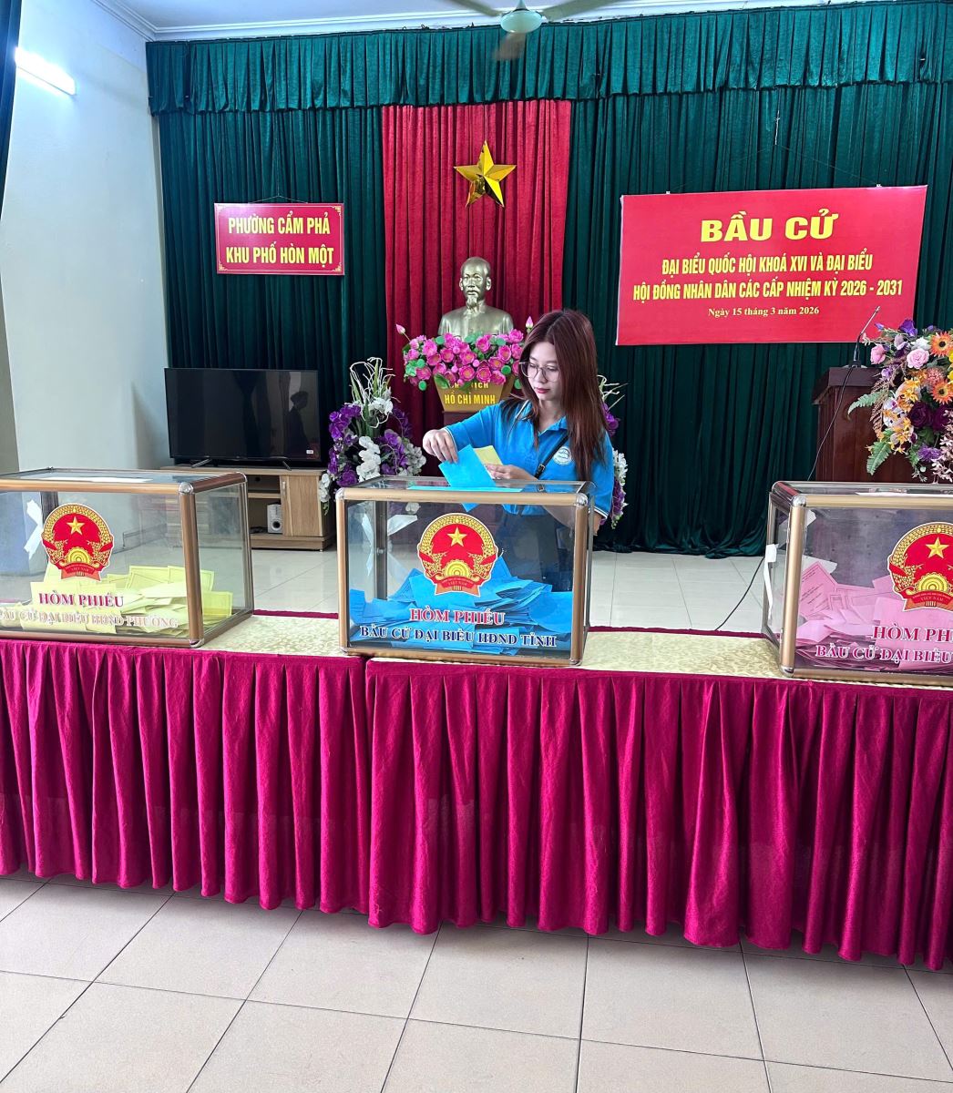 Sinh viên Đỗ Khánh Huyền tham gia bầu cử ở Khu phố Hòn Một, Phường Cẩm Phả