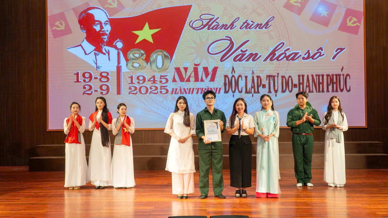 Hành trình văn hoá số 7 không chỉ là sân chơi học thuật bổ ích mà còn là dịp để các bạn sinh viên cùng nhìn lại hành trình 80 năm dựng xây và phát triển đất nước, khẳng định vai trò của thế hệ trẻ trong việc gìn giữ và phát huy giá trị văn hóa Việt Nam trong thời đại số.Kết thúc chương trình, kết quả được trao như sau: