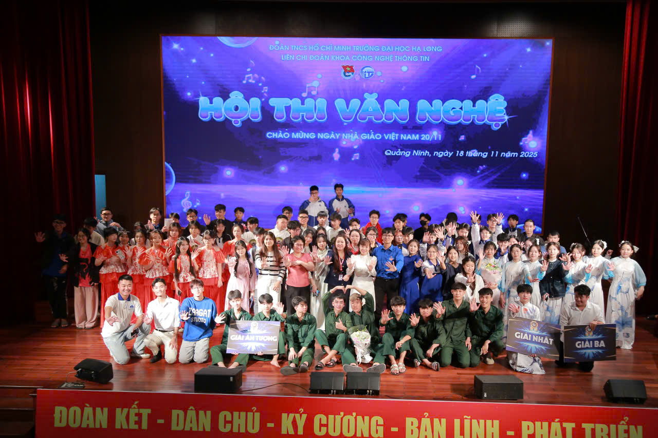 Chiều nay, tại hội trường Tòa B, Khoa Công nghệ thông tin đã tổ chức Hội thi Văn nghệ chào mừng Ngày Nhà giáo Việt Nam 20/11 trong không khí ấm áp, sôi nổi và giàu cảm xúc. Đây là hoạt động có ý nghĩa đặc biệt nhằm tri ân đội ngũ giảng viên – những người luôn tận tâm đồng hành, truyền đạt tri thức và khơi dậy niềm đam mê học tập cho sinh viên.