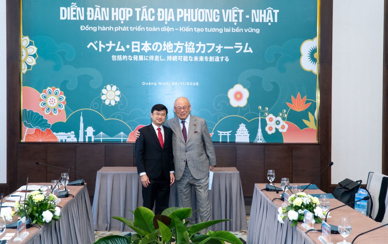 Dr. Nguyễn Đức Tiệp – Rector of Ha Long University taking a souvenir photo with Mr. Takebe Tsutomu