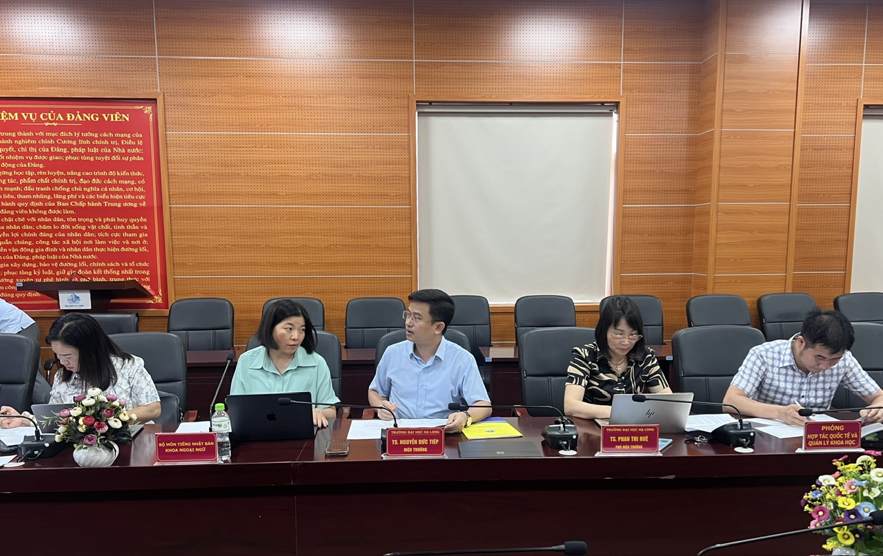 Attending the meeting on behalf of Ha Long University were Dr. Nguyen Duc Tiep – Rector of Ha Long University, Dr. Phan Thi Hue – Vice Rector, leaders of the Department of International Cooperation and Science Management, representatives of the Japanese Language Department (Faculty of Foreign Languages), and representatives of the Information and Library Center. The meeting took place in an open and productive atmosphere, reflecting the strong mutual interest in enhancing educational and cultural cooperation between Vietnam and Japan.