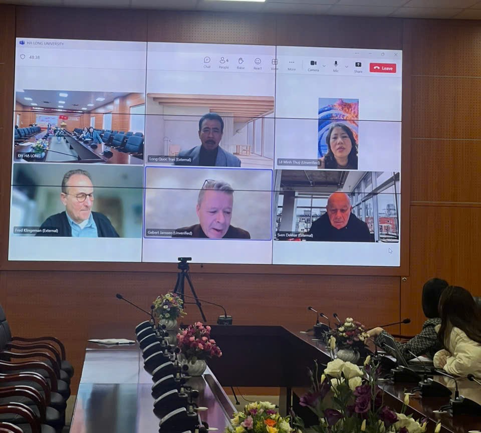 On the afternoon of February 4, 2025, Ha Long University held an online meeting with the PUM Netherlands Senior Experts to discuss the registration of the PUM project seeking expert support in the field of Event Management.