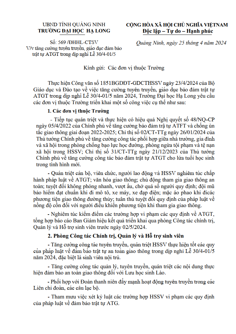 Tăng cường tuyên truyền, giáo dục đảm bảo trật tự ATGT trong dịp nghỉ Lễ 30/4 - 01/5