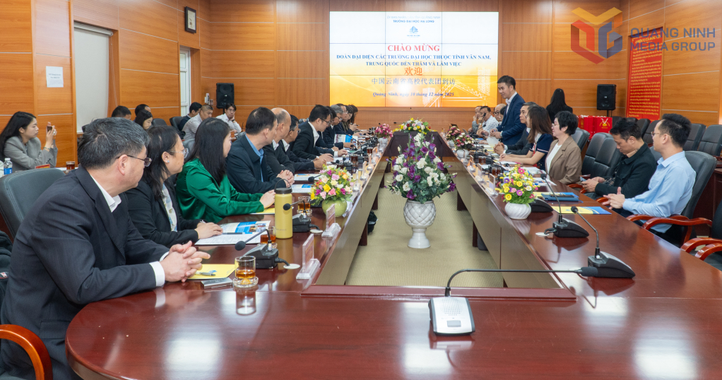 Trường Đại học Hạ Long tiếp đón và làm việc với đoàn 11 trường đại học tỉnh Vân Nam, Trung Quốc, về hợp tác đào tạo và nghiên cứu khoa học (tháng 12/2025).