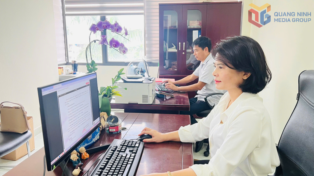 Cán bộ Công đoàn phường Bãi Cháy ứng dụng công nghệ thông tin trong công việc.
