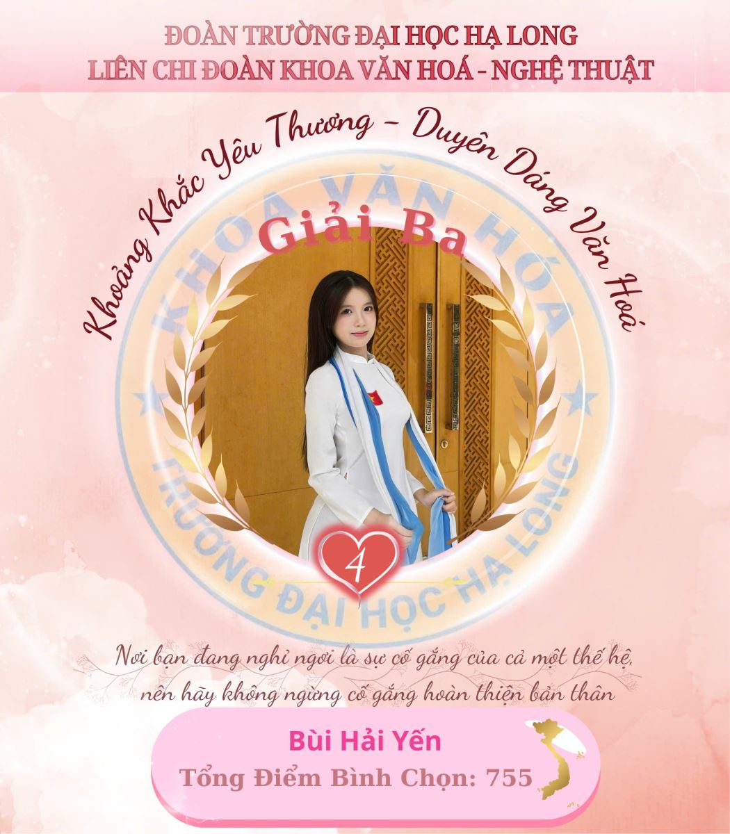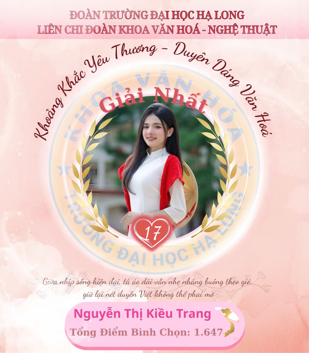 Sau hai tuần phát động, Cuộc thi ảnh “Khoảnh khắc yêu thương – Duyên dáng Văn hoá” do LCĐ khoa Văn hoá – Nghệ thuật, Trường Đại học Hạ Long tổ chức đã chính thức khép lại, để lại thật nhiều cảm xúc đẹp và ấn tượng sâu sắc trong lòng sinh viên toàn Khoa với lượng tương tác bùng nổ ấn tượng: 6.749 yêu thích và 2.160 lượt share.