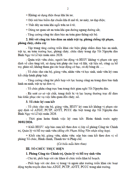 Kế hoạch bảo đảm trật tự an toàn giao thông, phòng chống tội phạm, an ninh trật tự, phòng cháy, chữa cháy trong dịp Tết Nguyên đán Bính Ngọ năm 2026
