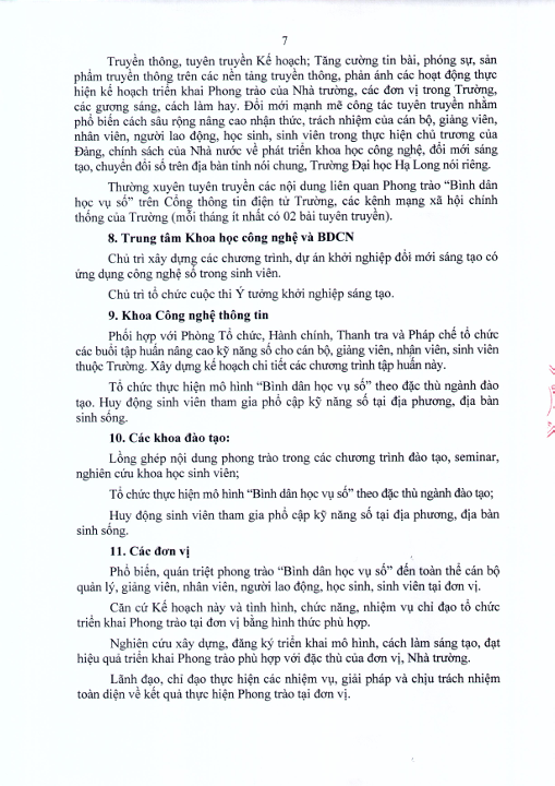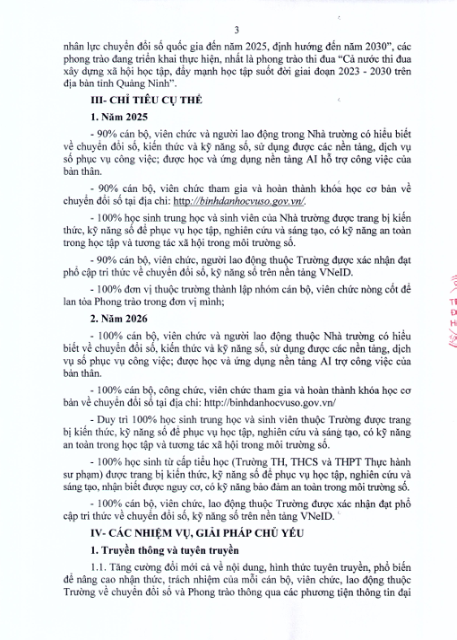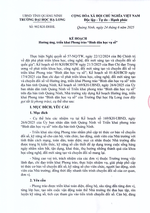 Kế hoạch hưởng ứng phong trào "Bình dân học vụ số"