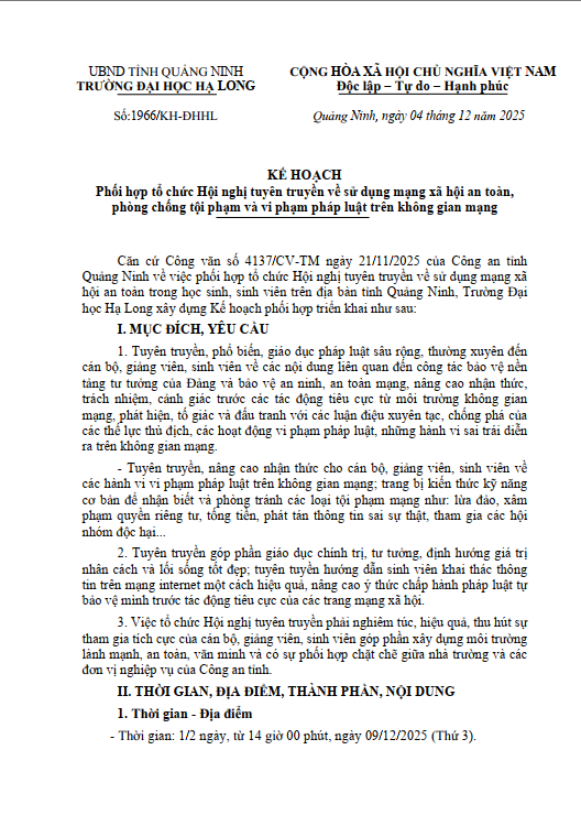 Kế hoạch phối hợp tổ chức Hội nghị tuyên truyền về sử dụng mạng xã hội an toàn, phòng chống tội phạm và vi phạm pháp luật trên không gian mạng
