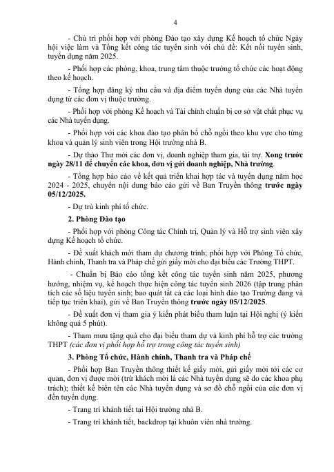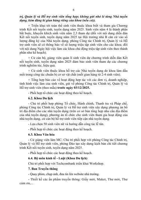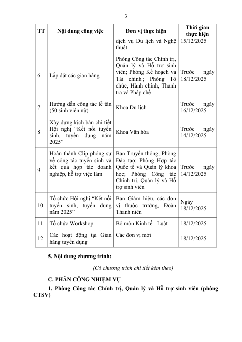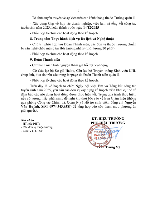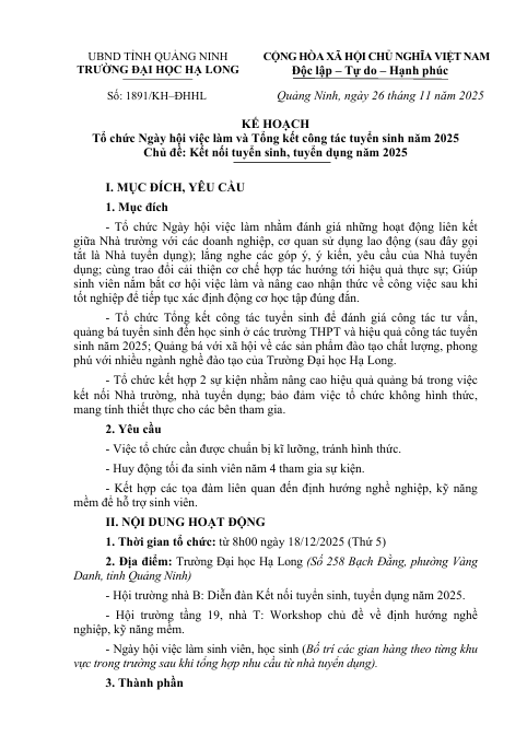 Kế hoạch tổ chức Ngày hội việc làm và Tổng kết công tác tuyển sinh năm 2025 với chủ đề: Kết nối tuyển sinh, tuyển dụng năm 2025