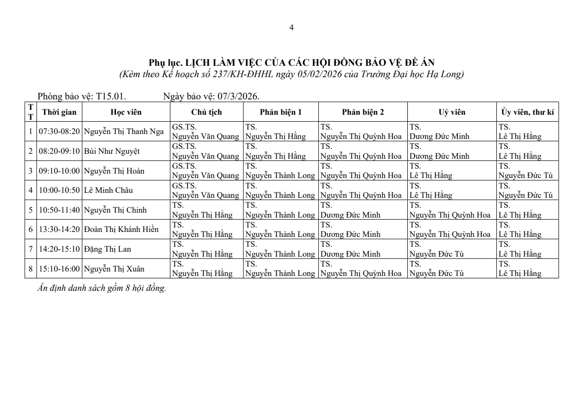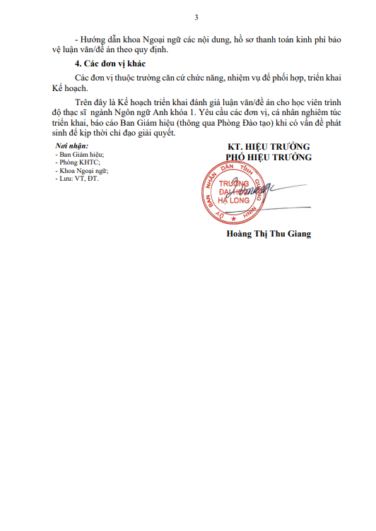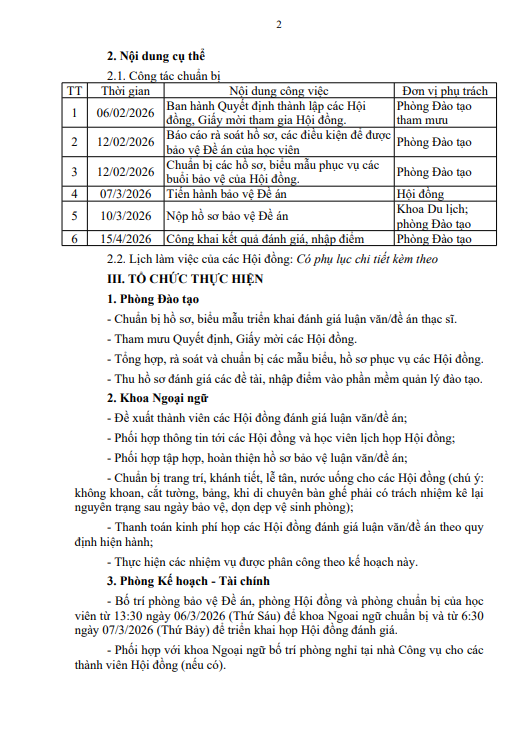 Kế hoạch tổ chức đánh giá luận văn/đề án thạc sĩ cho học viên lớp thạc sĩ Ngôn ngữ Anh khóa 1