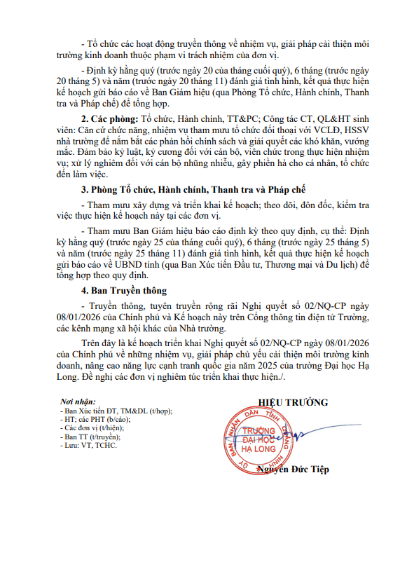 Kế hoạch triển khai Nghị quyết số 02/NQ-CP ngày 08/01/2026 của Chính phủ về những nhiệm vụ, giải pháp chủ yếu cải thiện môi trường kinh doanh, nâng cao năng lực cạnh tranh quốc gia năm 2026