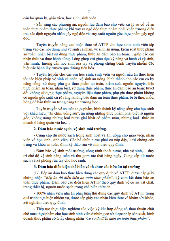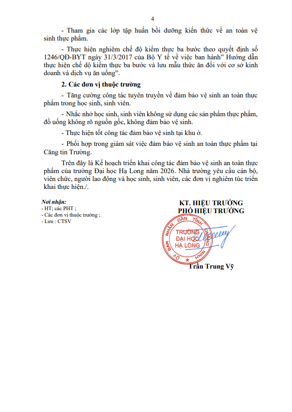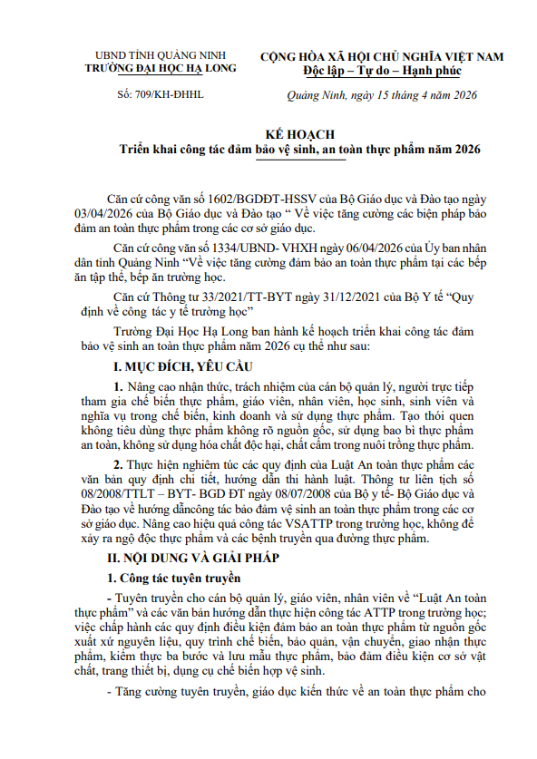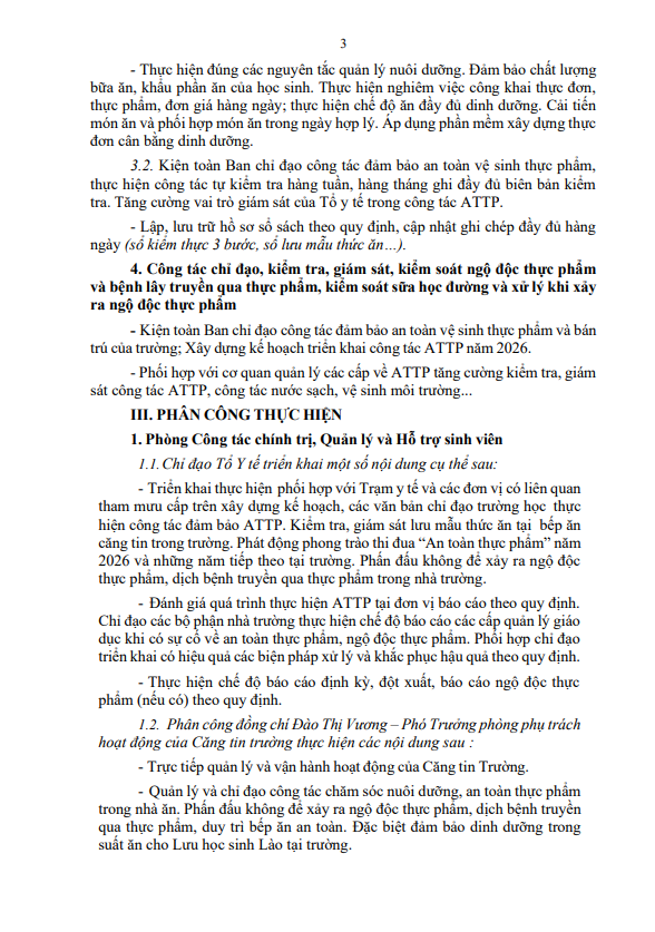 Kế hoạch triển khai công tác đảm bảo vệ sinh, an toàn thực phẩm năm 2026