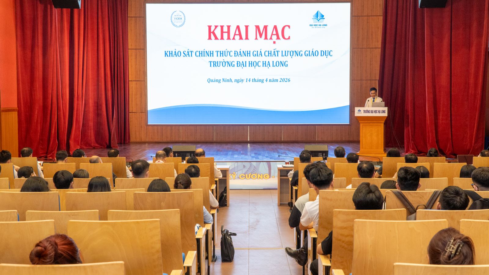 Chiều ngày 14/4/2026, Trường Đại học Hạ Long phối hợp với Trung tâm Kiểm định chất lượng giáo dục - Đại học Vinh tổ chức Lễ khai mạc đợt khảo sát chính thức phục vụ đánh giá ngoài cơ sở giáo dục đại học tại Trường Đại học Hạ Long dựa trên các tiêu chuẩn đánh giá chất lượng giáo dục trường đại học do Bộ Giáo dục và Đào tạo ban hành.