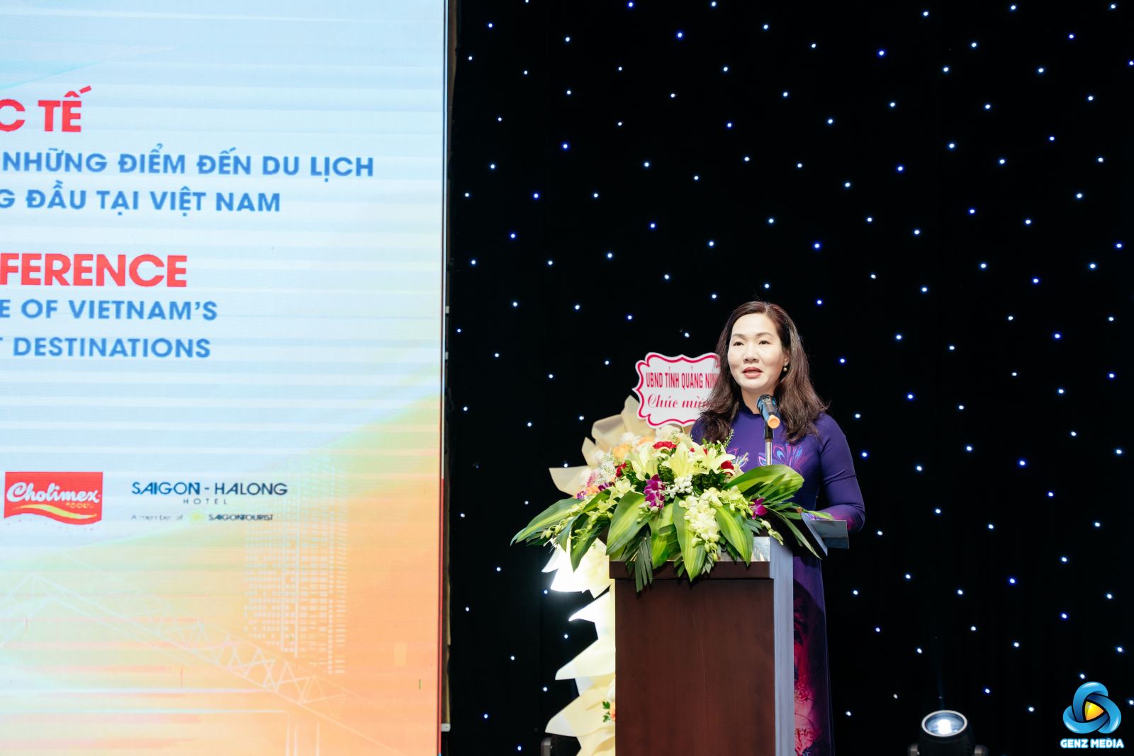 Phó Chủ tịch UBND tỉnh Nguyễn Thị Hạnh giới thiệu về tiềm năng, thế mạnh của du lịch Quảng Ninh.