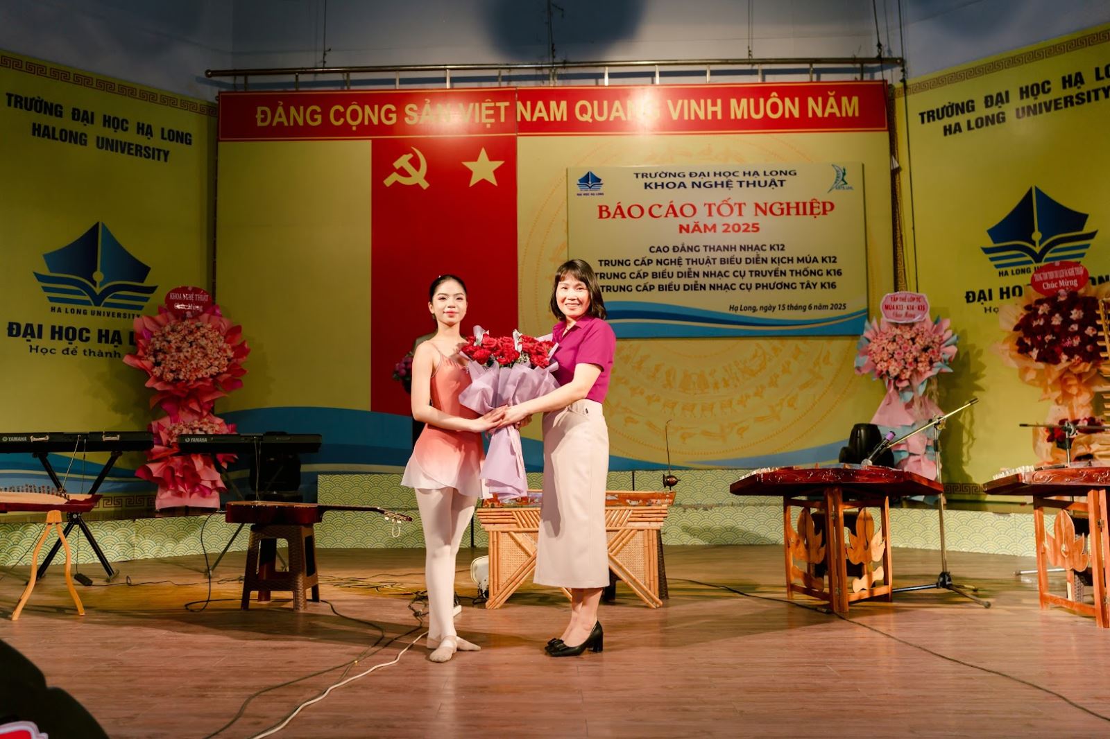 Sáng ngày 15 tháng 6 năm 2025, tại Cơ sở 2 – Trường Đại học Hạ Long, khoa Nghệ thuật đã tổ chức Chương trình Báo cáo tốt nghiệp năm 2025 (chương trình báo cáo tốt nghiệp của các bạn học sinh - sinh viên các hệ đào tạo cao đẳng và trung cấp nghệ thuật, thuộc khoa Nghệ thuật, trường Đại học Hạ Long).
