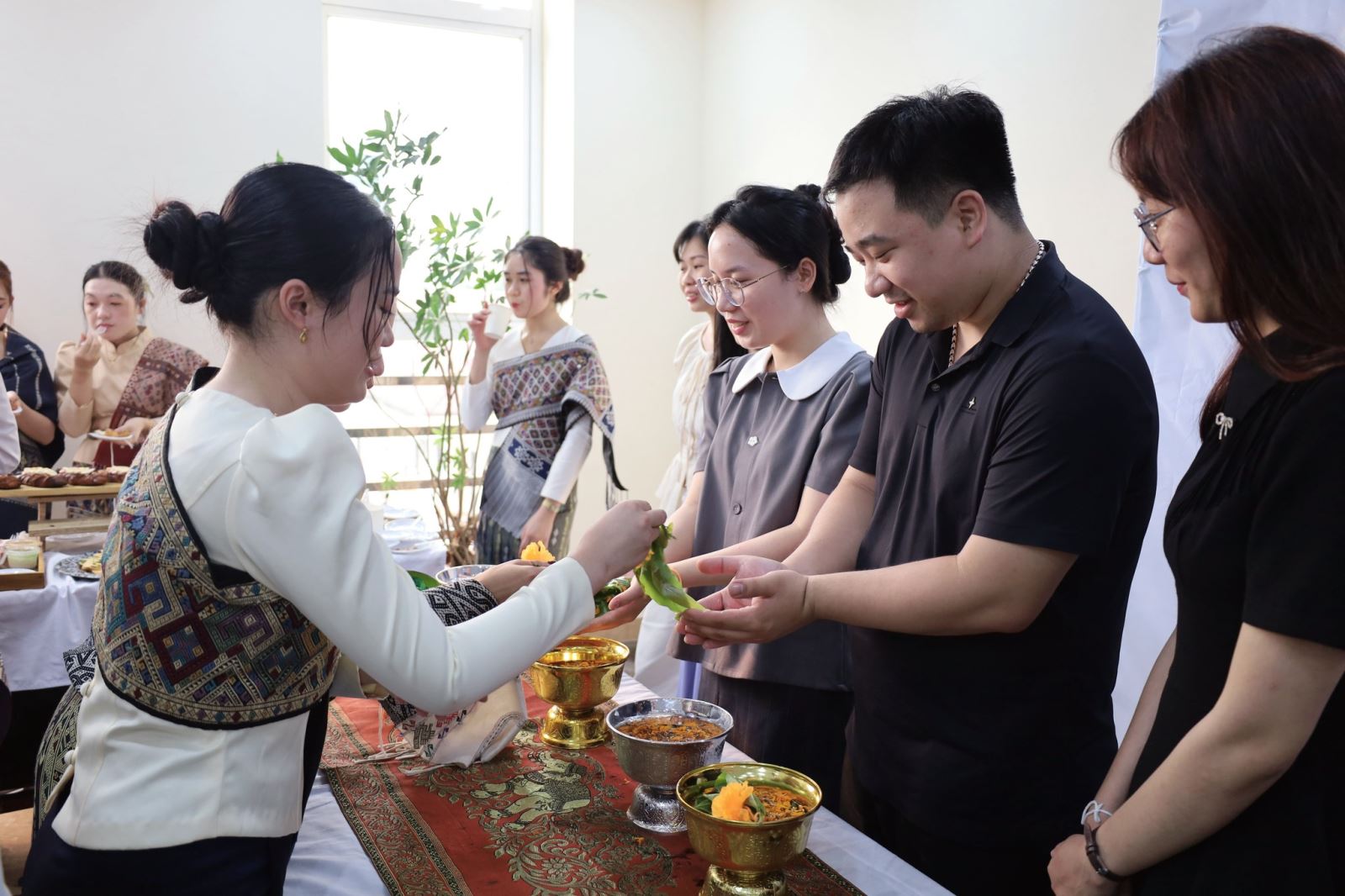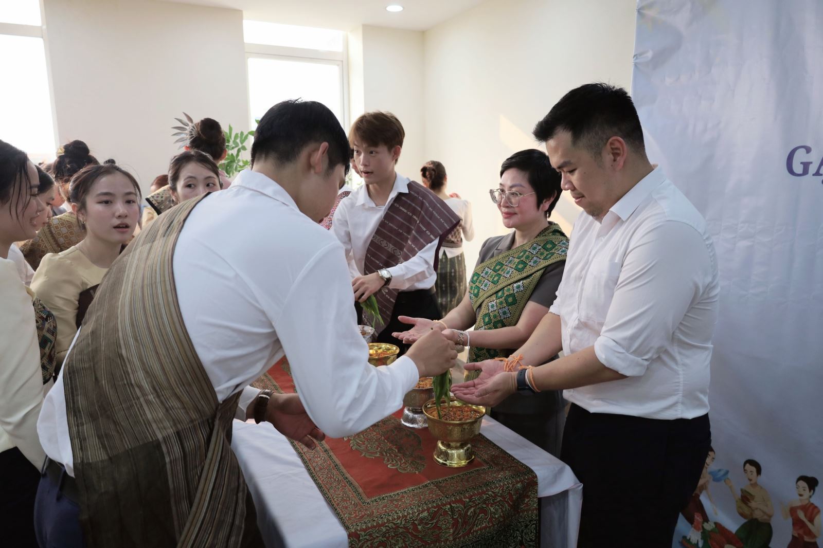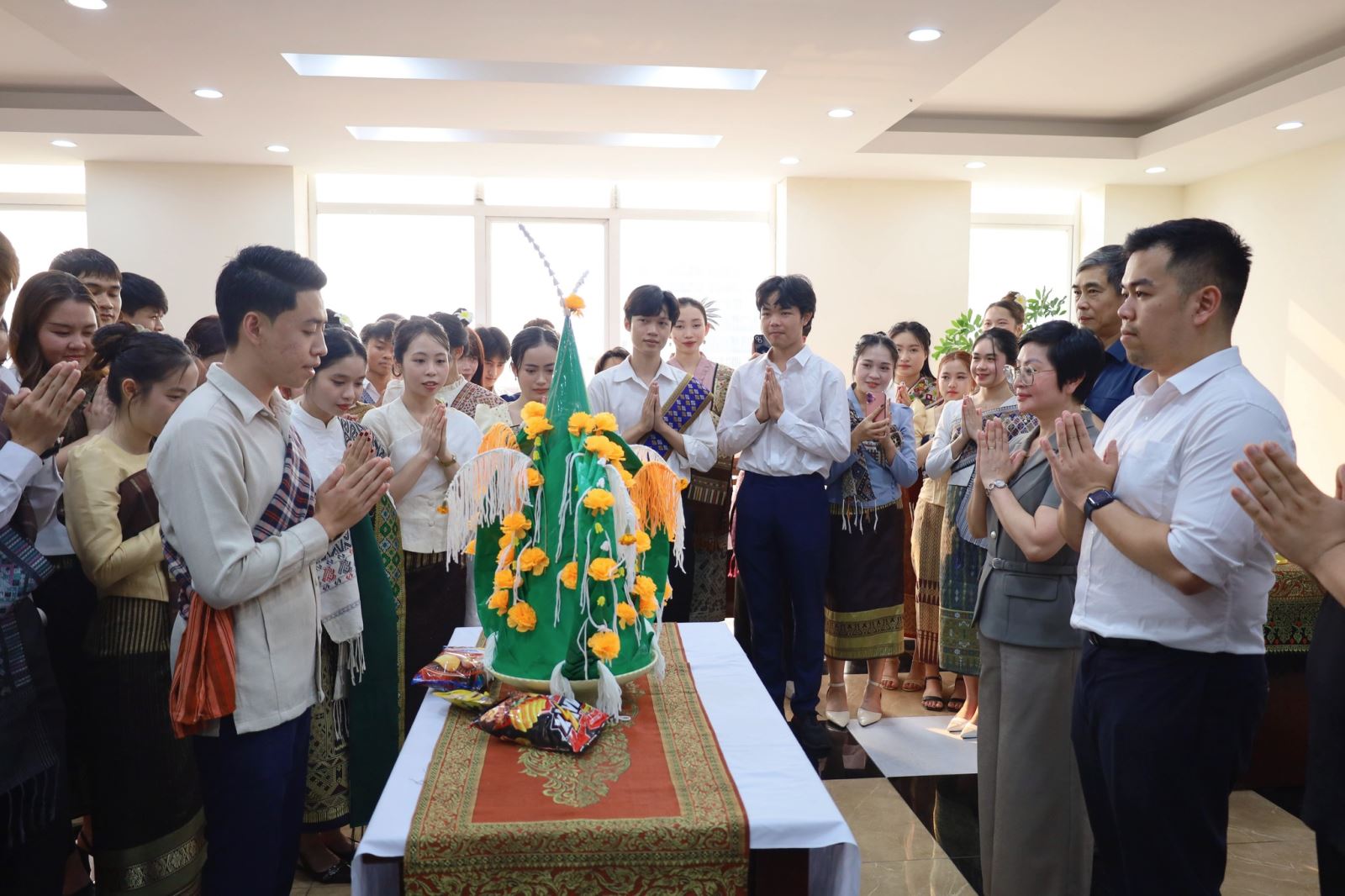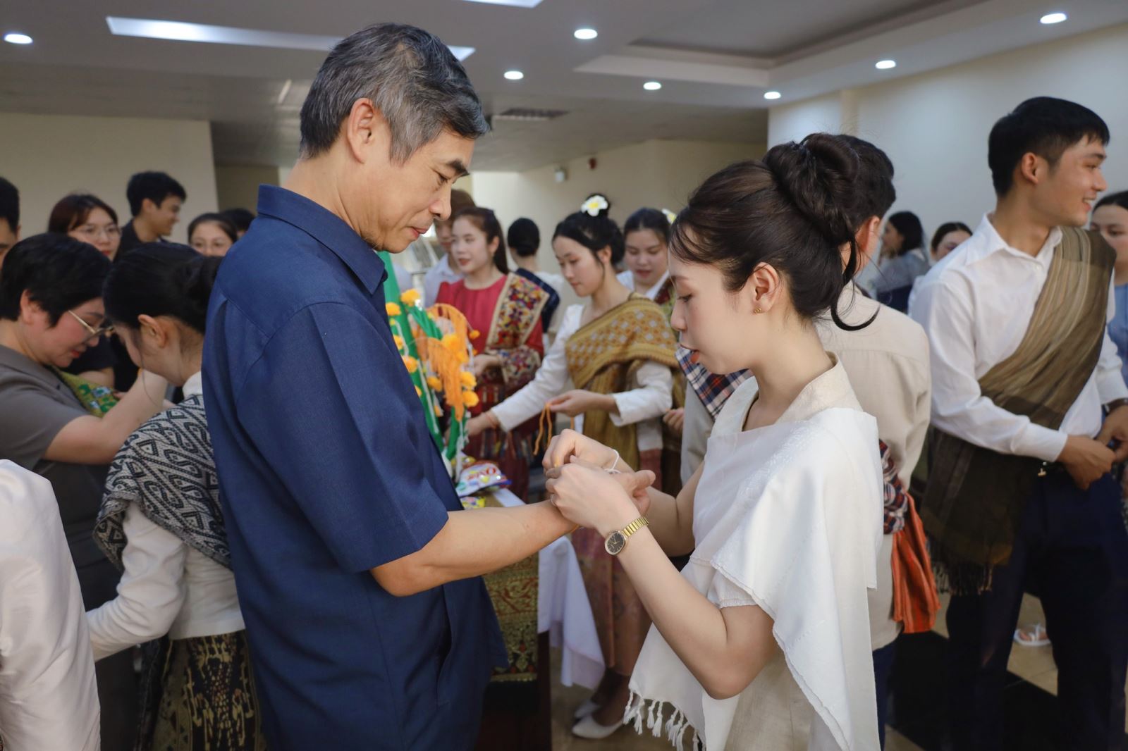 Tại buổi gặp mặt, các bạn sinh viên Lào đã thực hiện nghi thức buộc chỉ cổ tay (Baci) và nghi thức rửa tay – những nét đẹp văn hóa truyền thống đặc trưng của Tết Bunpimay, mang ý nghĩa cầu chúc sức khỏe, bình an, may mắn và gột rửa những điều không may của năm cũ, đón chào một năm mới tốt lành.