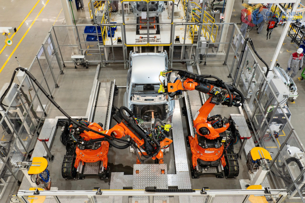 Dây chuyền lắp ráp ô tô tại Nhà máy ô tô Thành Công Việt Hưng.