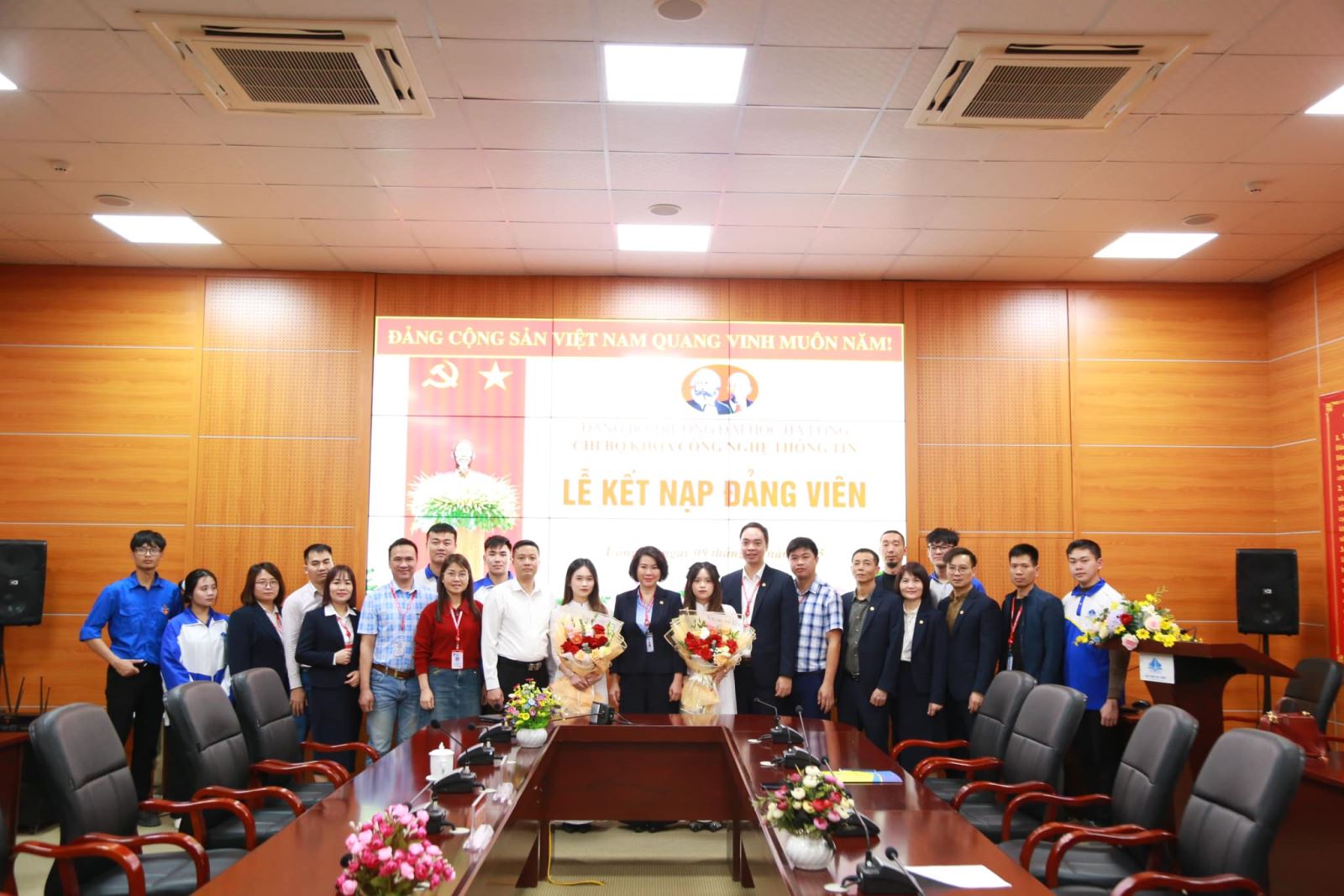 Lễ kết nạp Đảng viên diễn ra trong không khí trang trọng và ấm cúng, với sự tham dự của đại diện Chi bộ Đảng, Đoàn Trường, các thầy cô khoa CNTT, cùng các bạn sinh viên. Đây cũng là nguồn động lực to lớn, khích lệ toàn thể sinh viên Khoa CNTT tiếp tục rèn luyện, học tập và cống hiến.