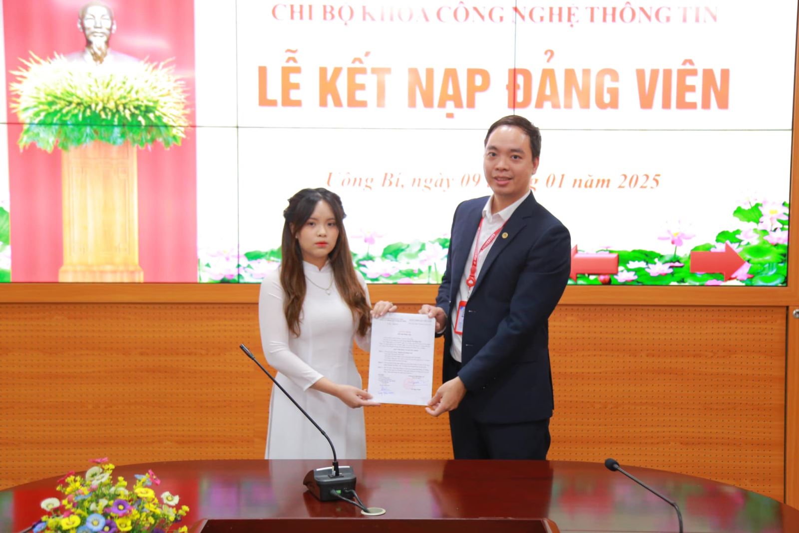 Chúc mừng hai tân Đảng viên! Mong rằng các bạn sẽ tiếp tục phát huy tinh thần tiên phong, trách nhiệm và trở thành nguồn cảm hứng cho thế hệ sinh viên tiếp theo.