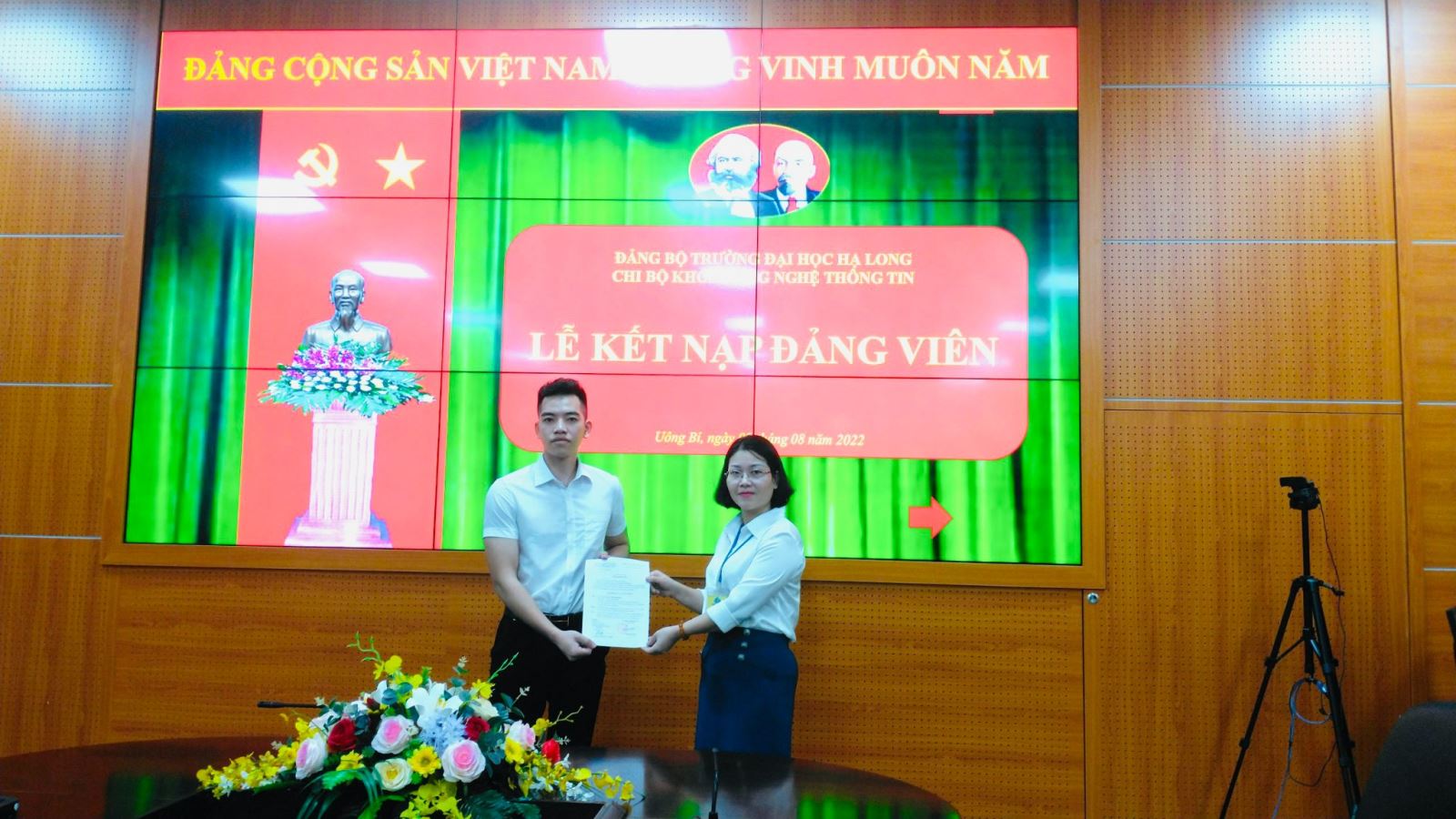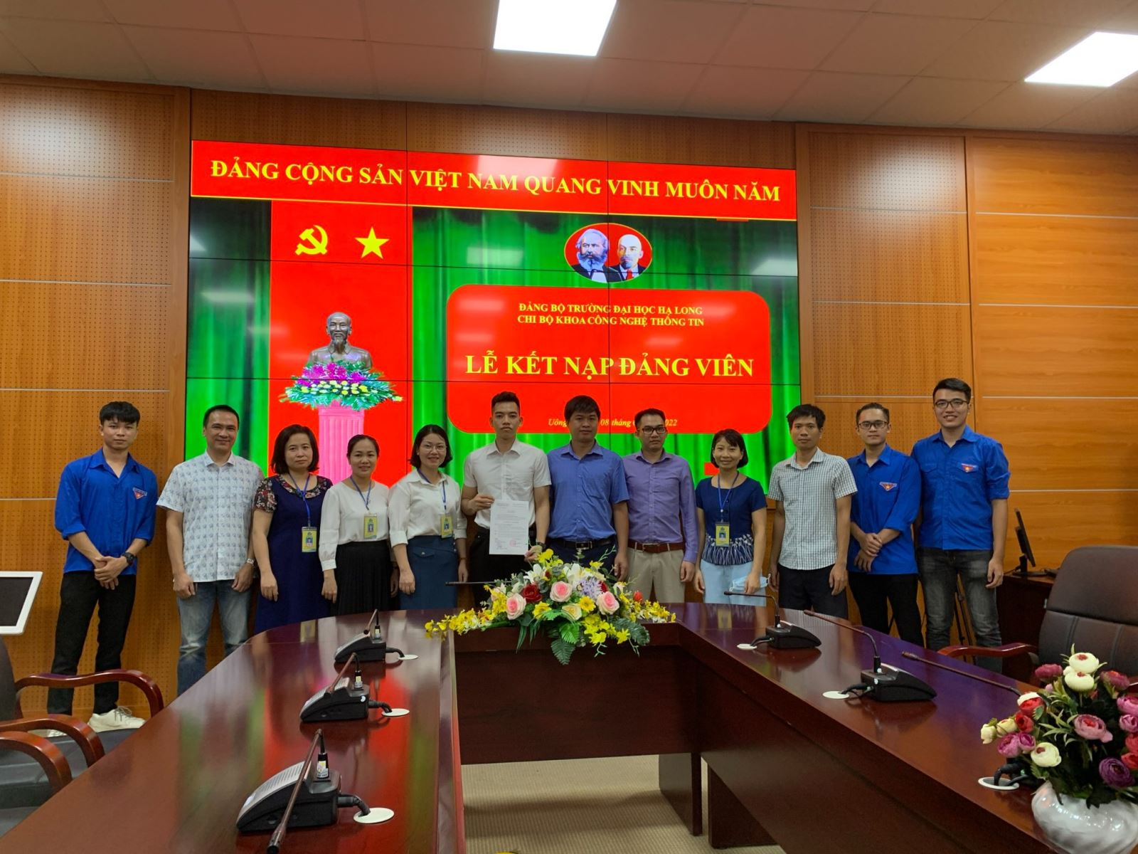 Bồi dưỡng, kết nạp Đảng viên mới là nhiệm vụ thường xuyên, có ý nghĩa quan trọng trong công tác xây dựng Đảng, góp phần phát triển, nâng cao chất lượng và sức chiến đấu của tổ chức cơ sở Đảng nói chung và các cá nhân Đảng viên mới nói riêng. Được sự đồng ý của Đảng bộ Trường Đại học Hạ Long, sáng ngày 08/08/2022 Chi bộ Khoa Công nghệ thông tin đã tổ chức Lễ kết nạp Đảng viên mới cho sinh viên Bùi Mạnh Hùng lớp Khoa học máy tính k4-Khoa Công nghệ thông tin.
