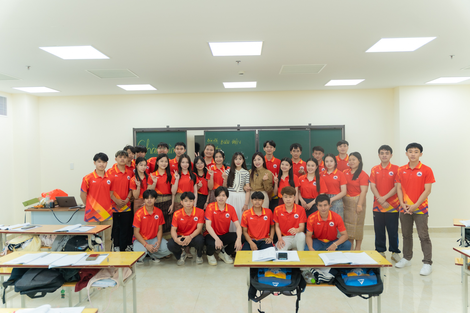 Maysee lên thăm lớp Lào K14 và chụp ảnh cùng lớp. (Ảnh: DHHL)