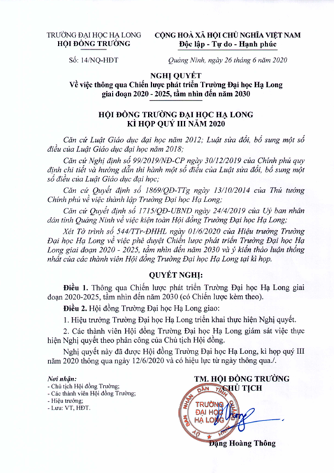 Chi tiết xem tại: Chiến lược phát triển trường Đại học Hạ Long giai đoạn 2020-2025, tầm nhìn đến 2030
