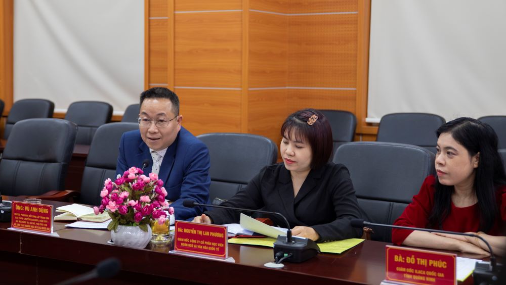 Attending the working program from Ha Long University were: Dr. Nguyen Duc Tiep (President); Dr. Phan Thi Hue (Vice President); and representatives from various departments, including the International Cooperation & Scientific Management Office, the Faculty of Information Technology, and the Foreign Language and Informatics Center. Representing the International Language and Culture Academy (ILACA) were: Ms. Nguyen Thi Lan Phuong (Director); Mr. Vu Anh Dung (Former Deputy Director and Founder of the Training & Technology Transfer Center, Institute of Information Technology, Vietnam National University, Hanoi; Vice President of the National ILACA Digital School Ecosystem); and Ms. Do Thi Phuc (Director of ILACA in Quang Ninh Province.