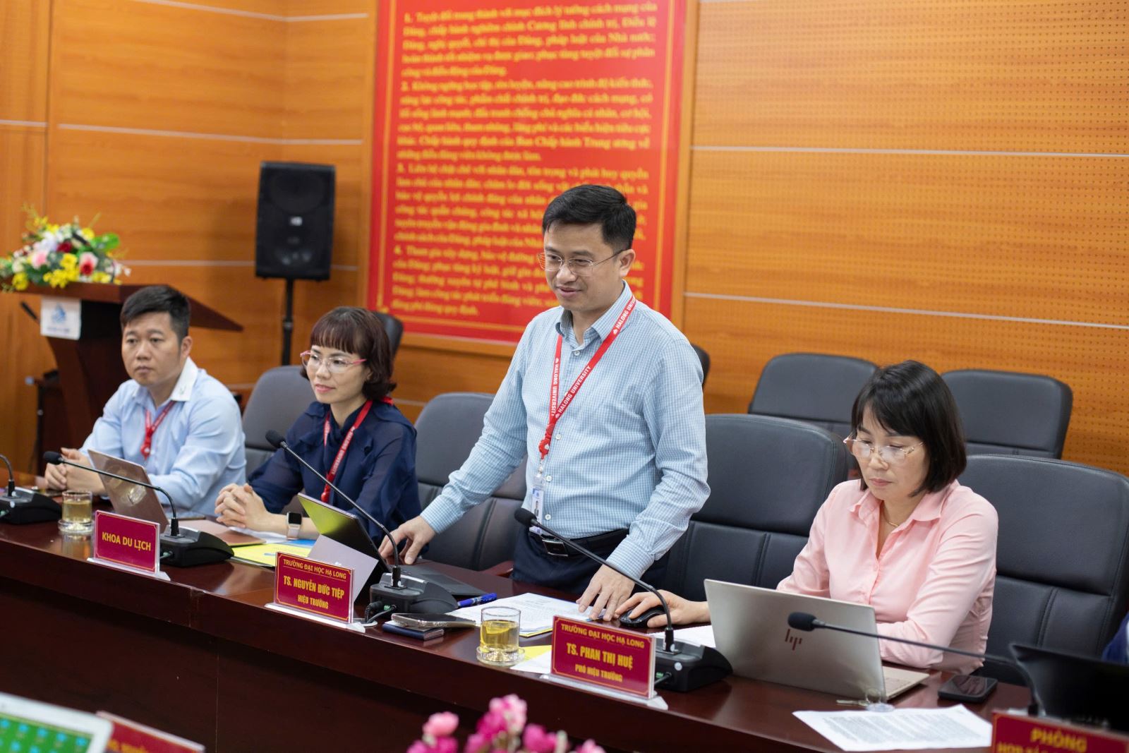 Dr. Nguyen Duc Tiep - the President of Ha Long University, spoke at the working session